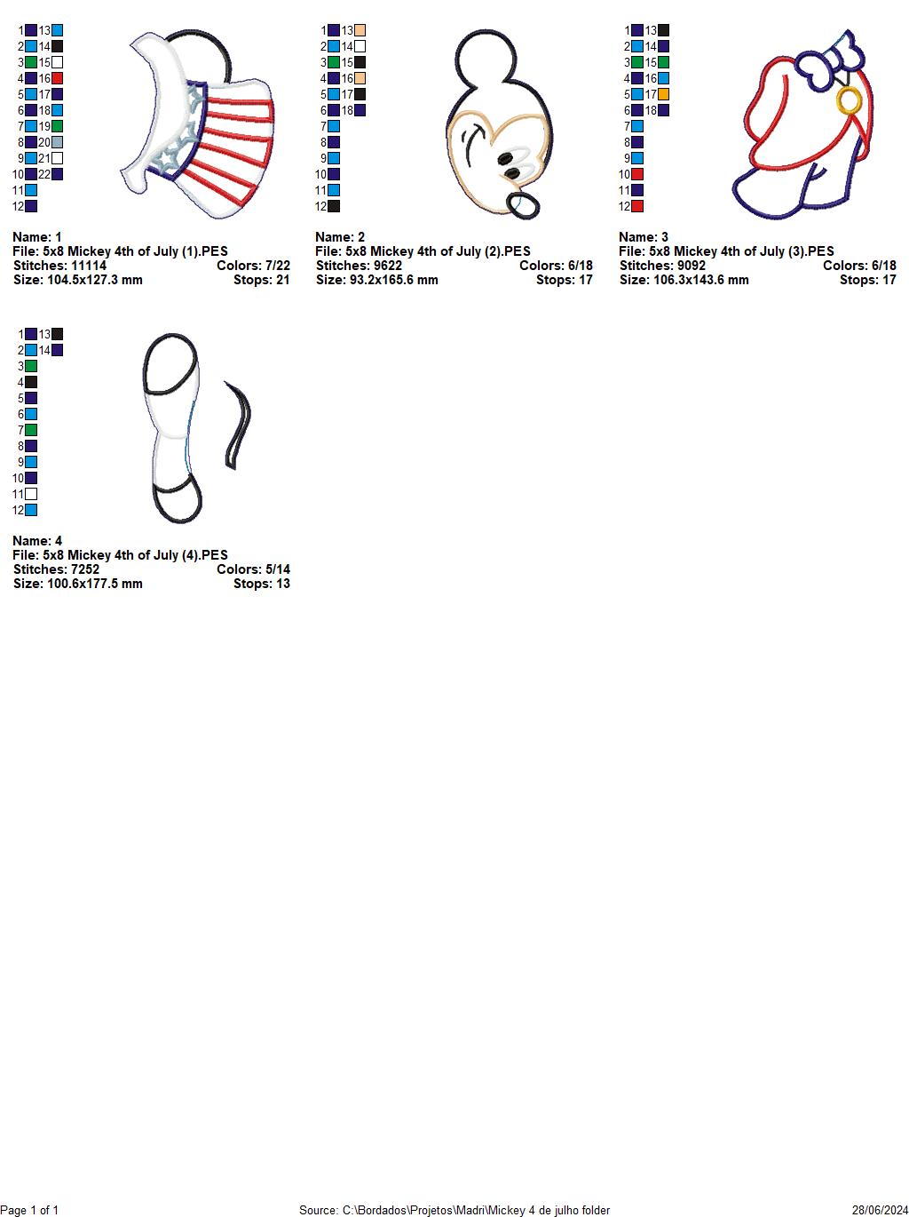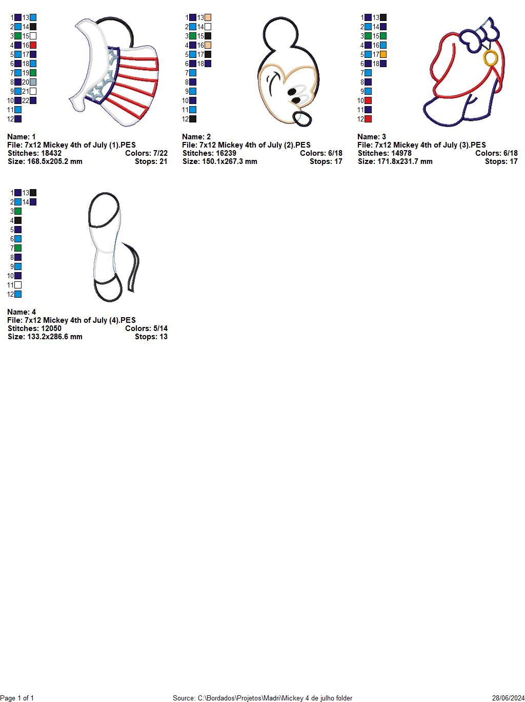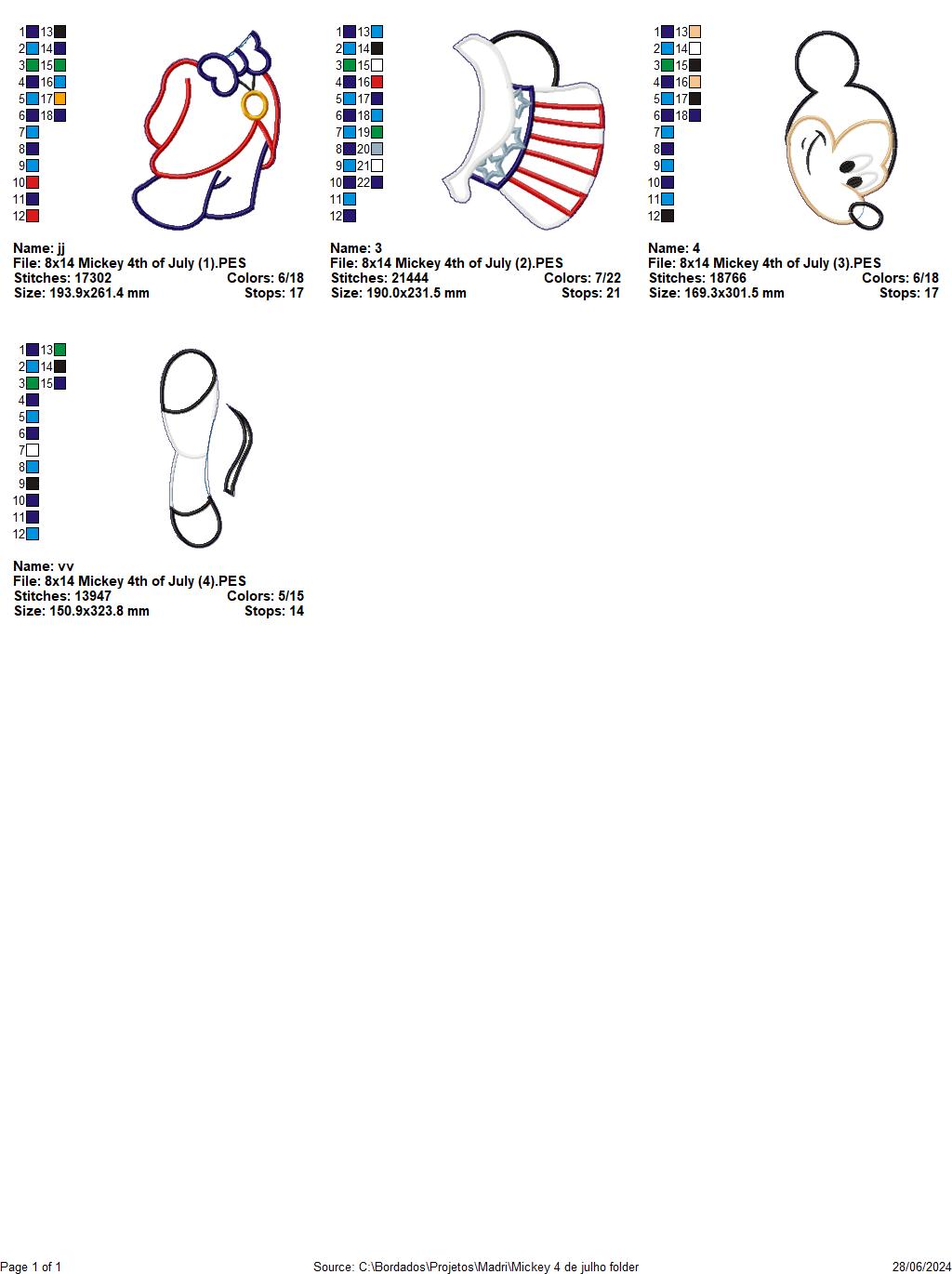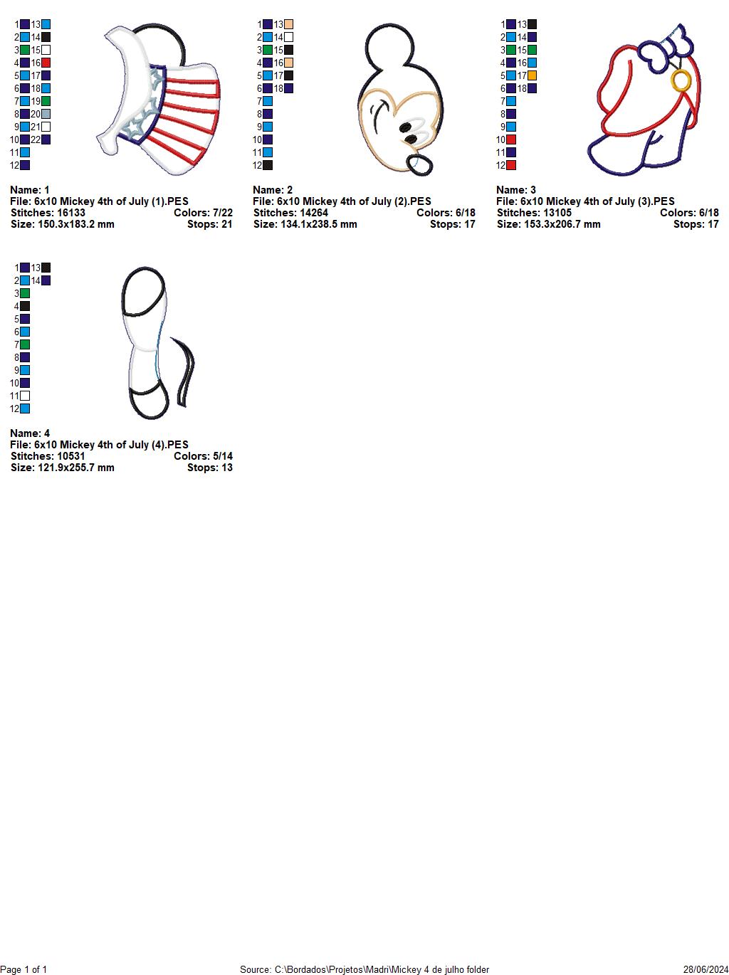 Mickey 4th of July - ITH Project - Machine Embroidery Design