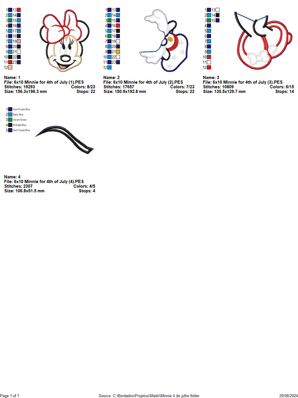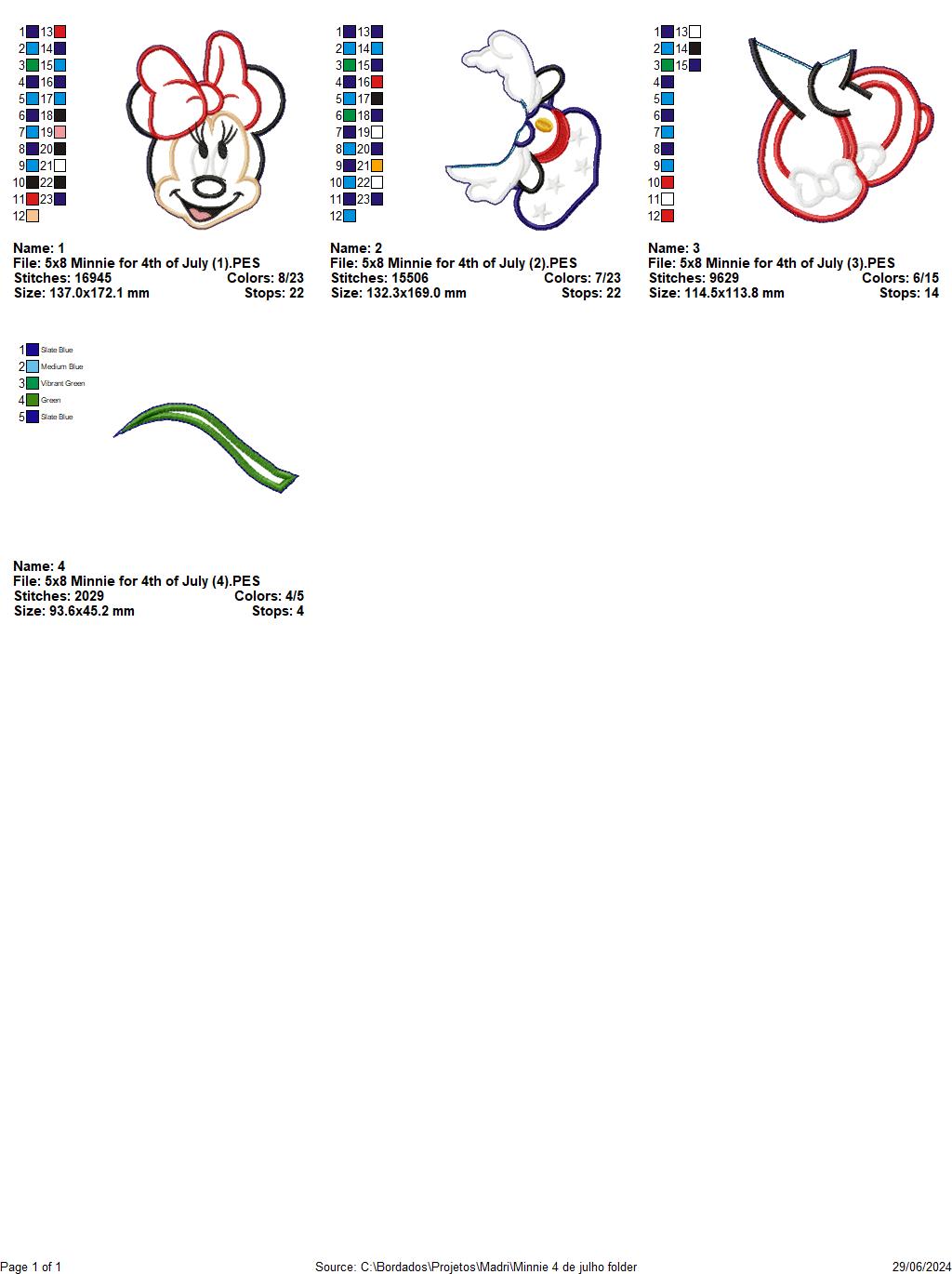 Minnie 4th of July - ITH Project - Machine Embroidery Design