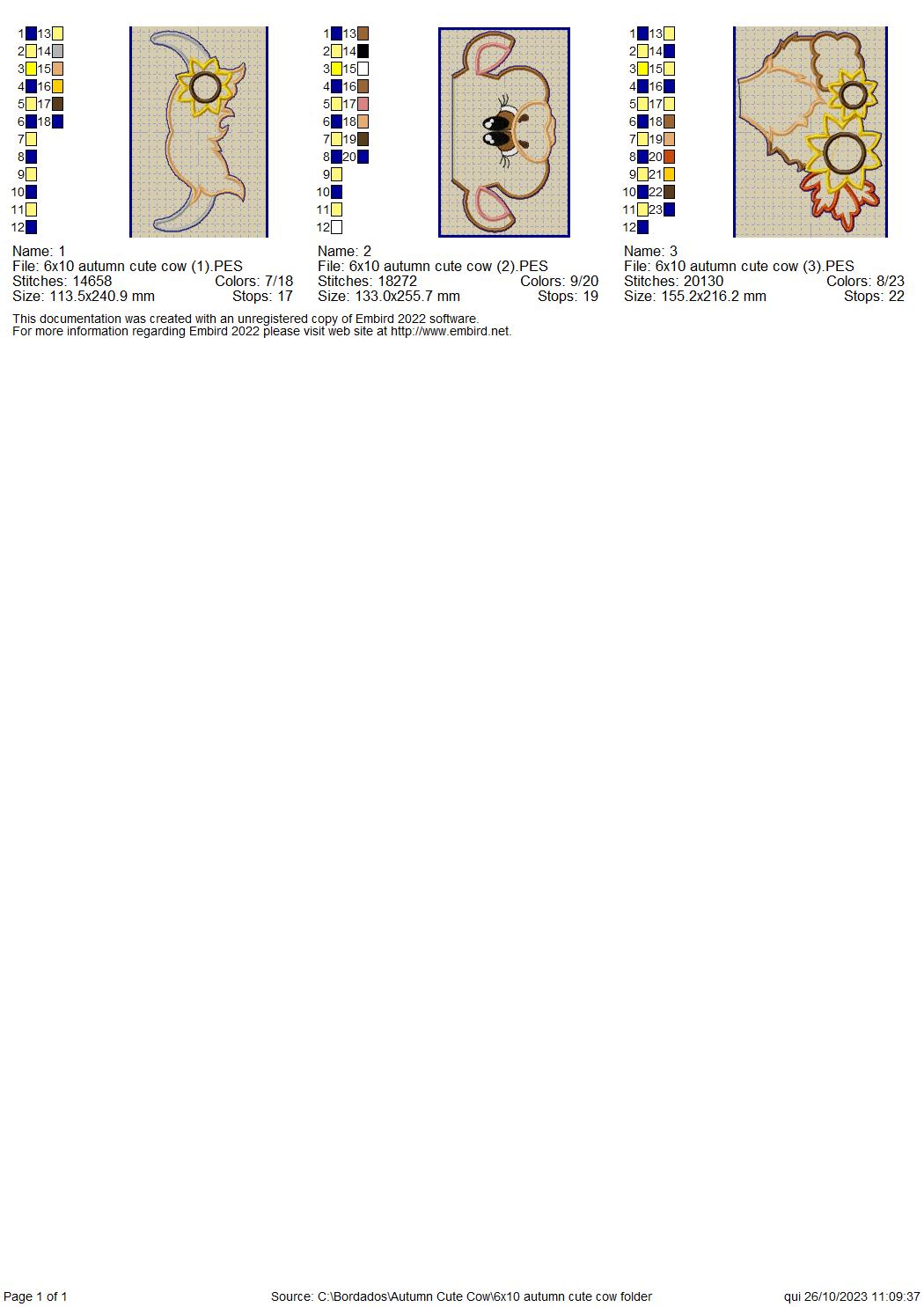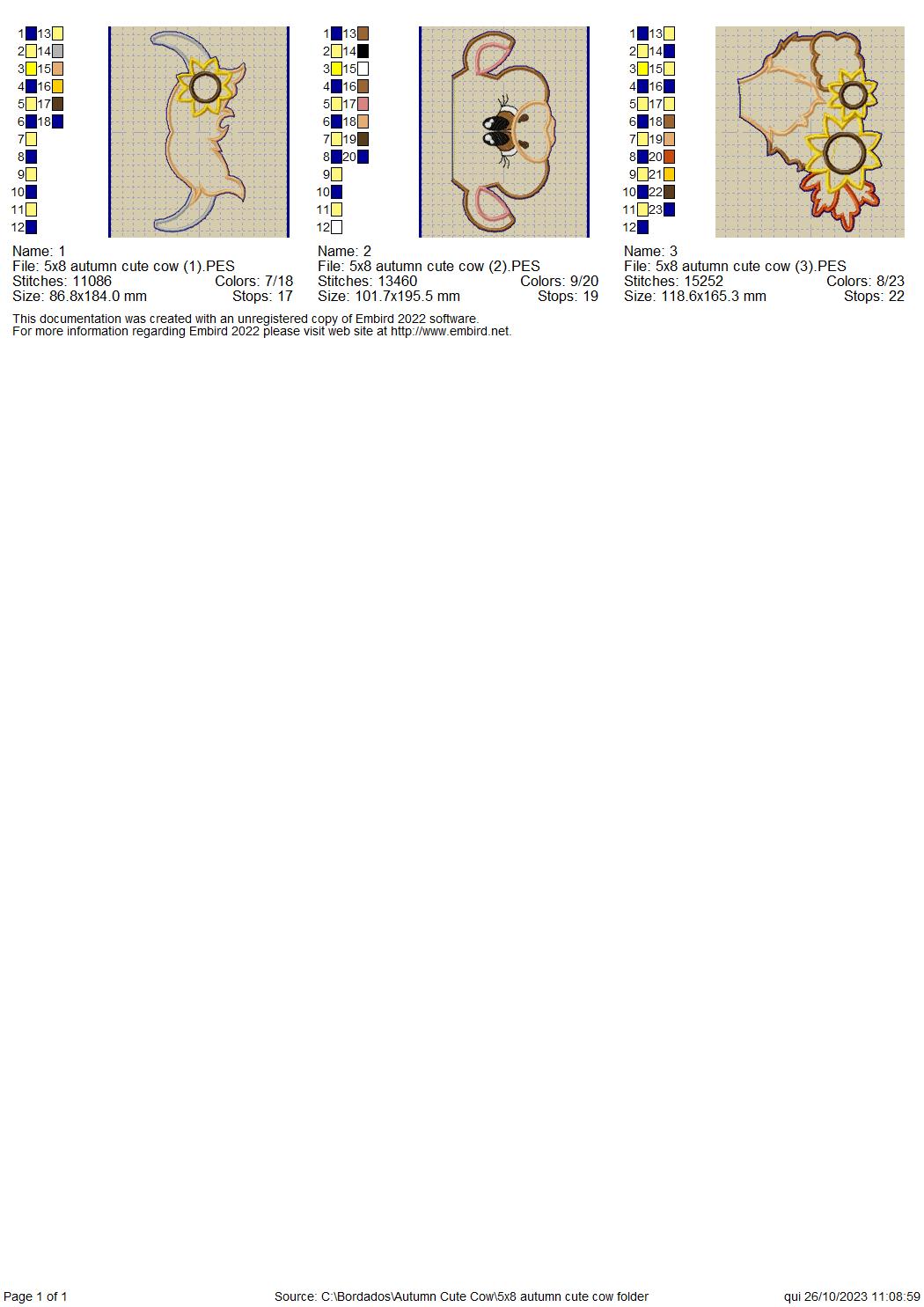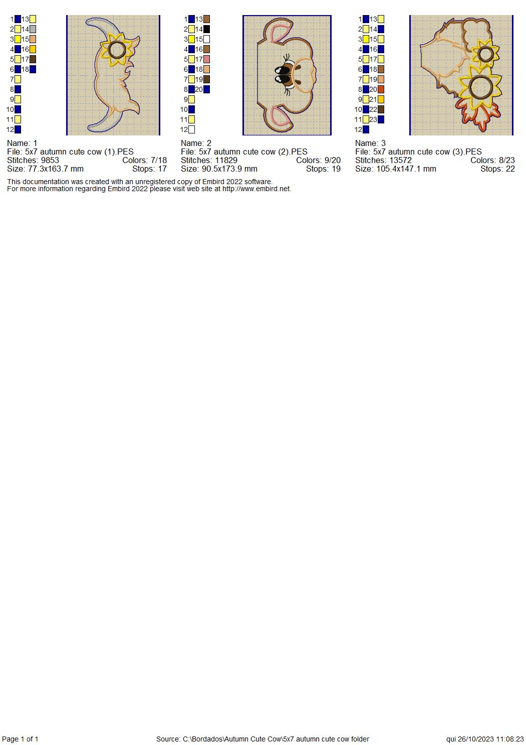Autumn Cute Cow - ITH Project - Machine Embroidery Design