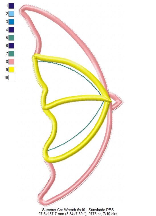 Summer Cat Wreath - ITH Project - Machine Embroidery Design