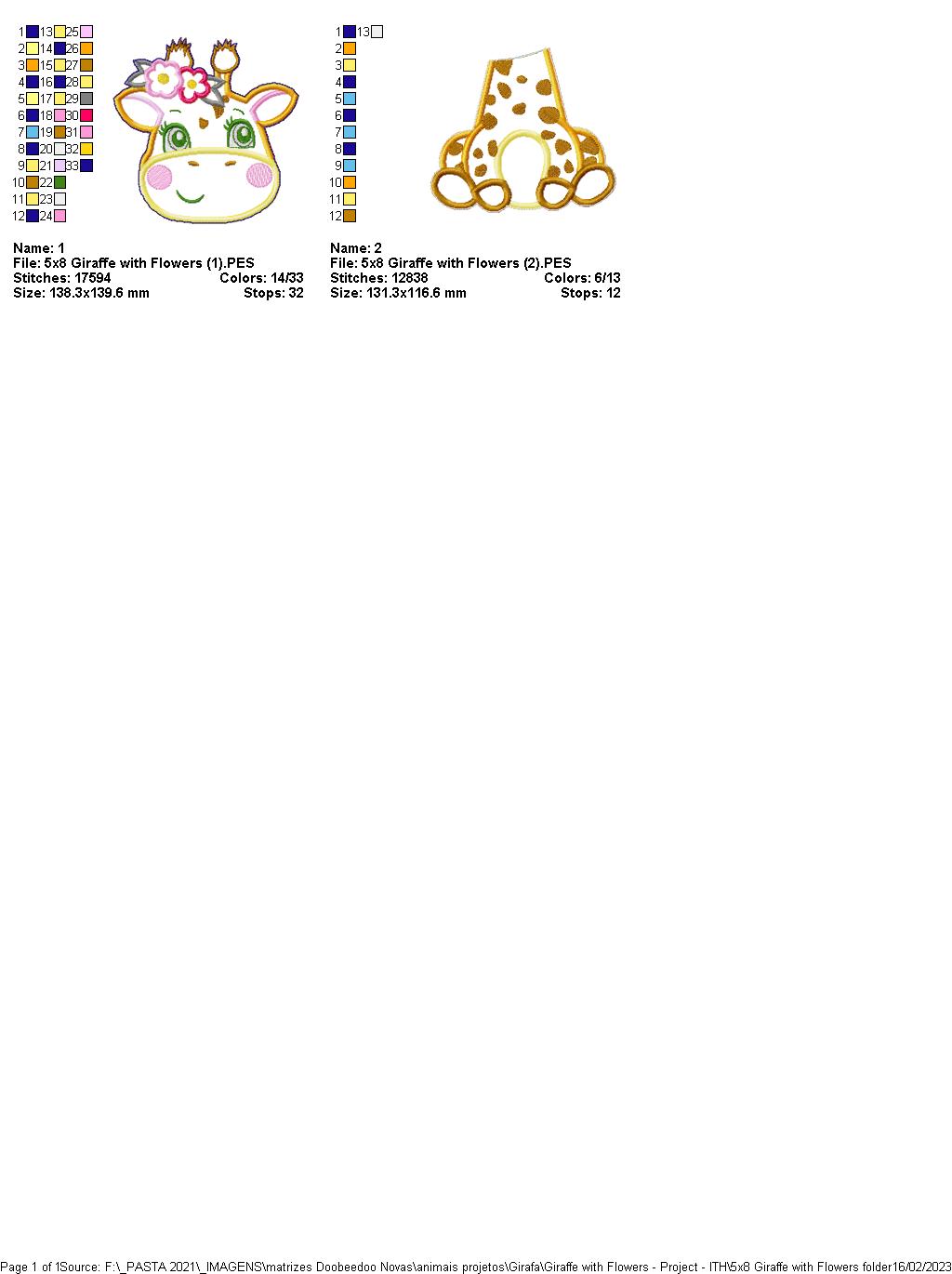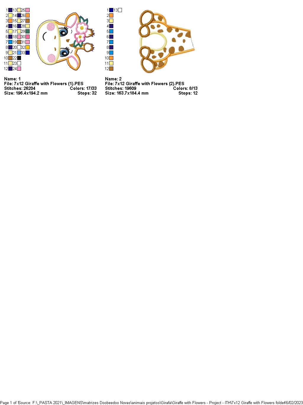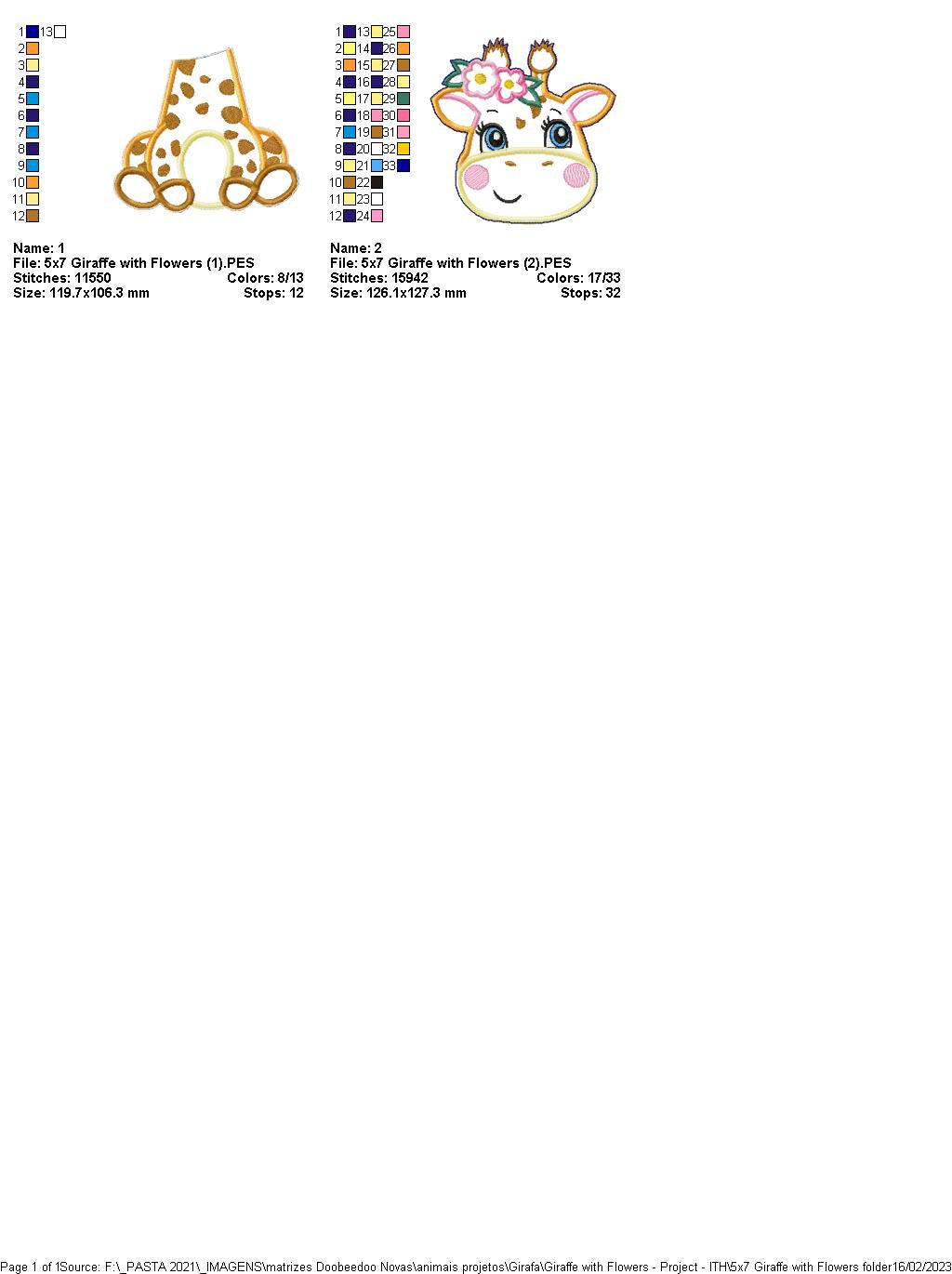 Giraffe with Flowers - ITH Project - Machine Embroidery Design