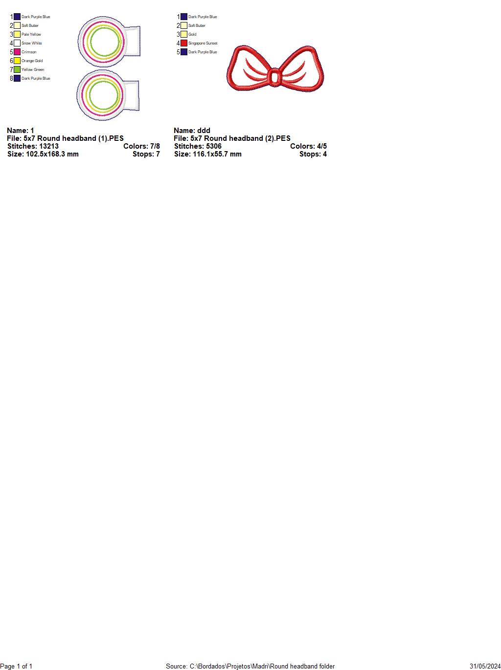 Round headband Ears Headbands - ITH Project - Machine Embroidery Design
