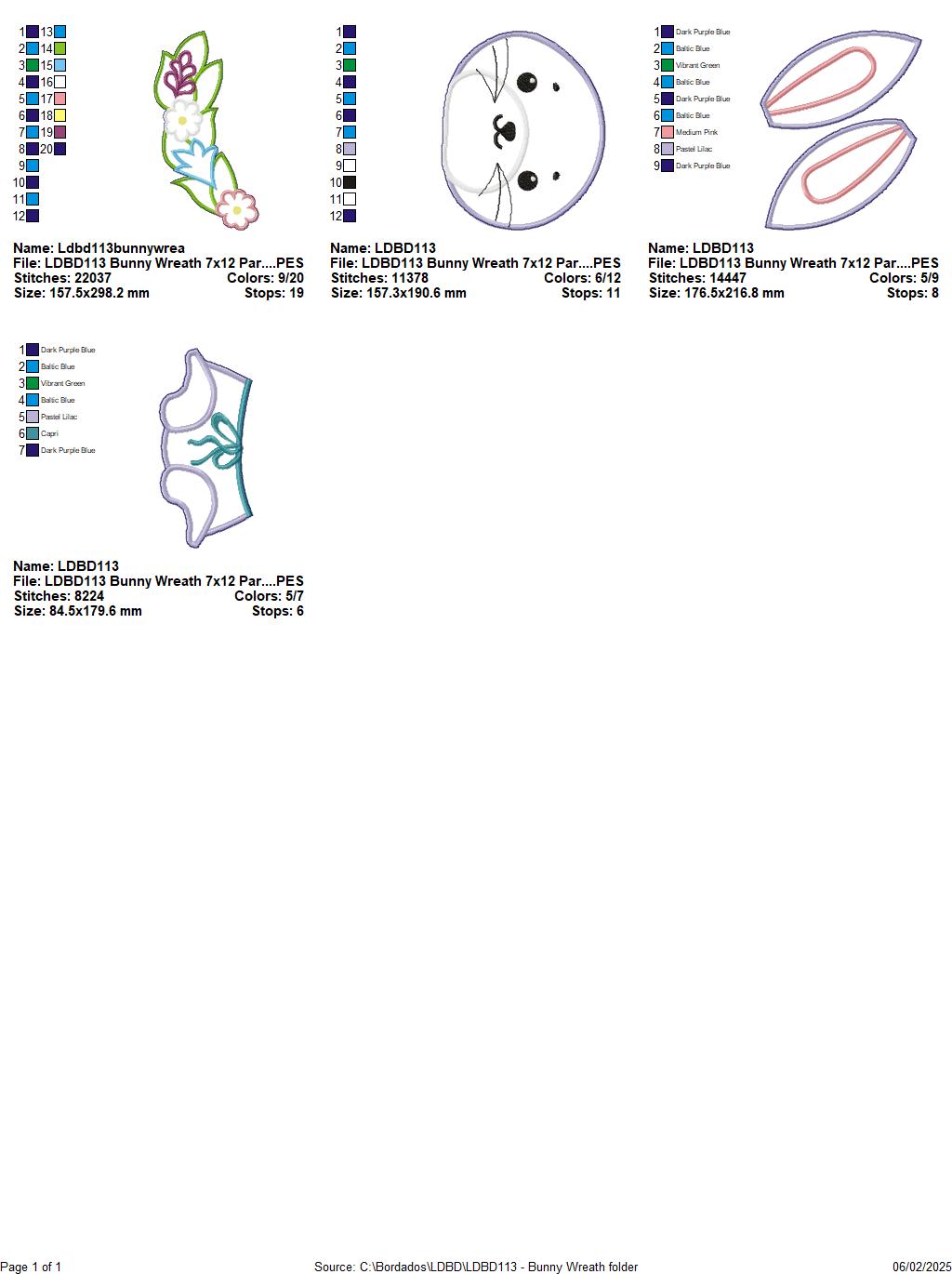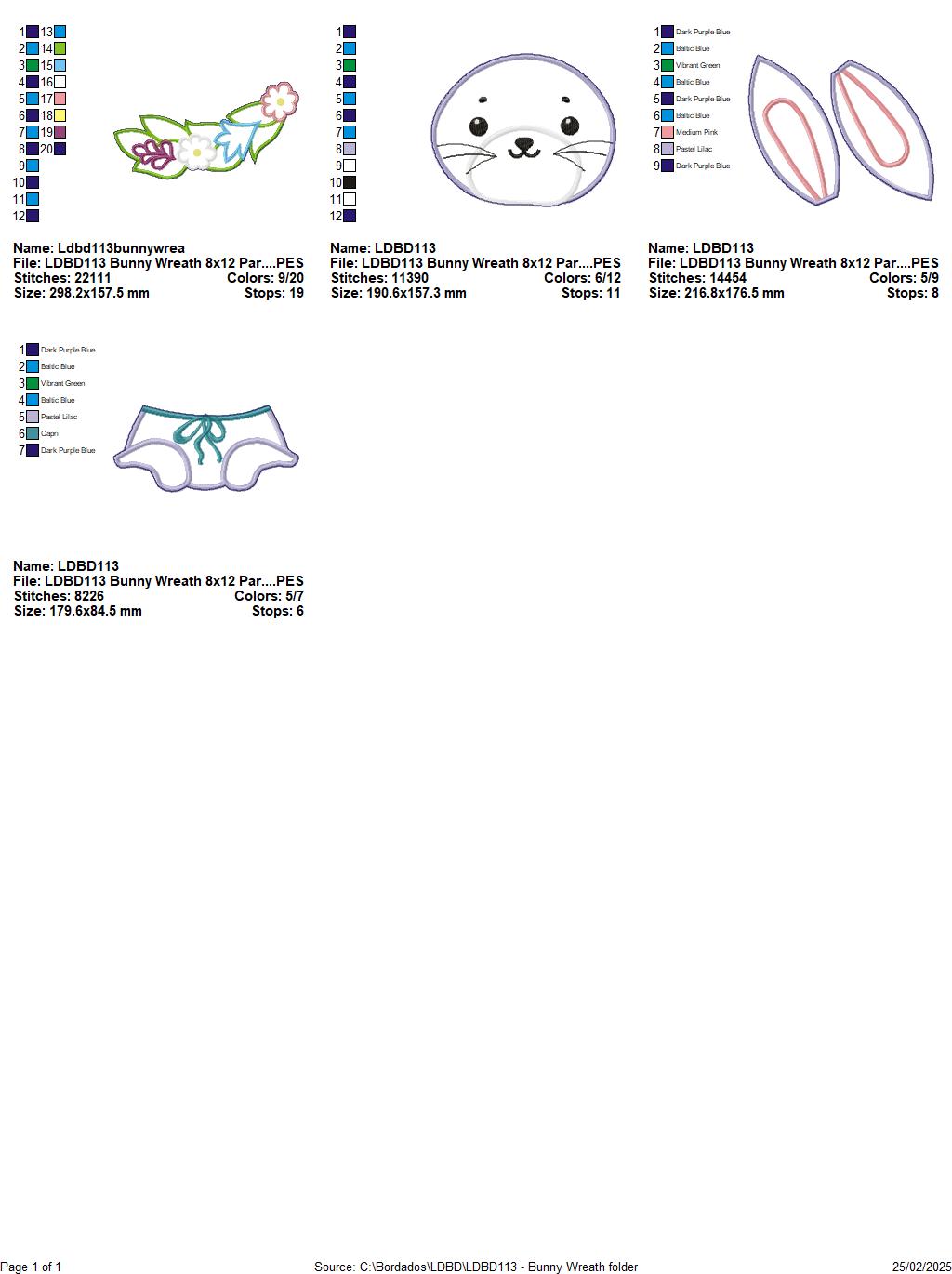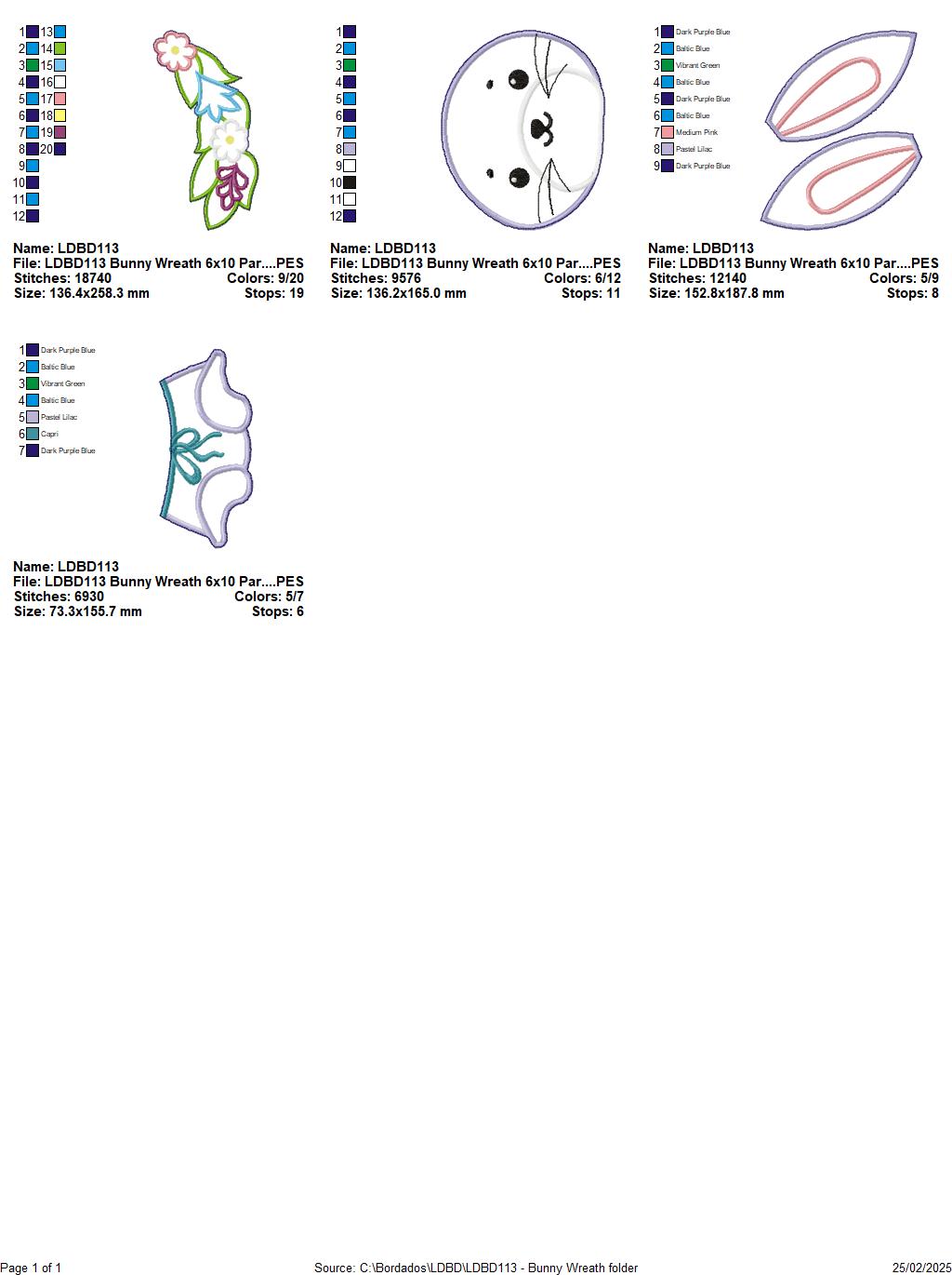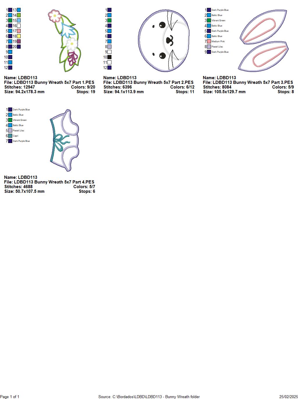 Easter Bunny Flowers Wreath - ITH Project - Machine Embroidery Design