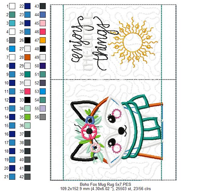 Boho Fox Mug Rug - ITH Project - Machine Embroidery Design