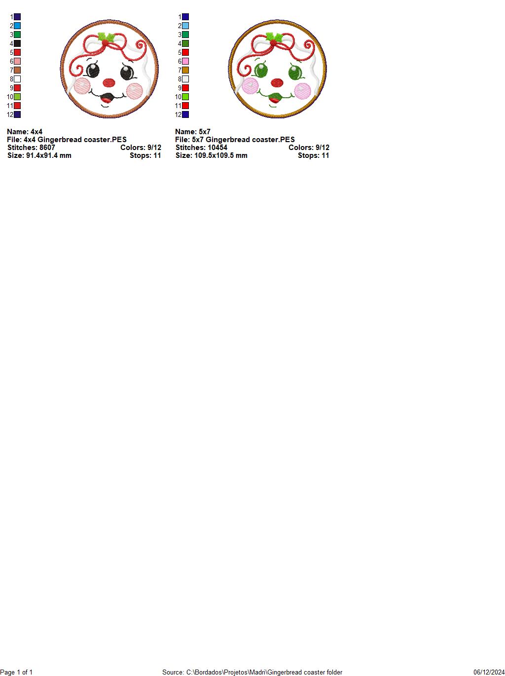 Christmas Gingerbread Coaster - ITH Project - Machine Embroidery Design