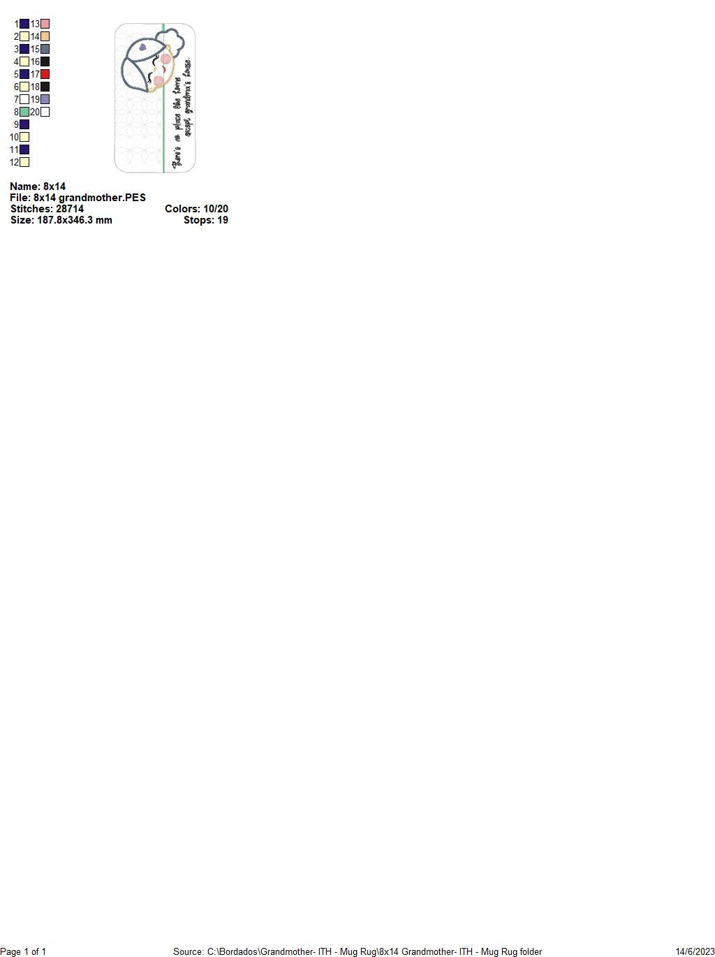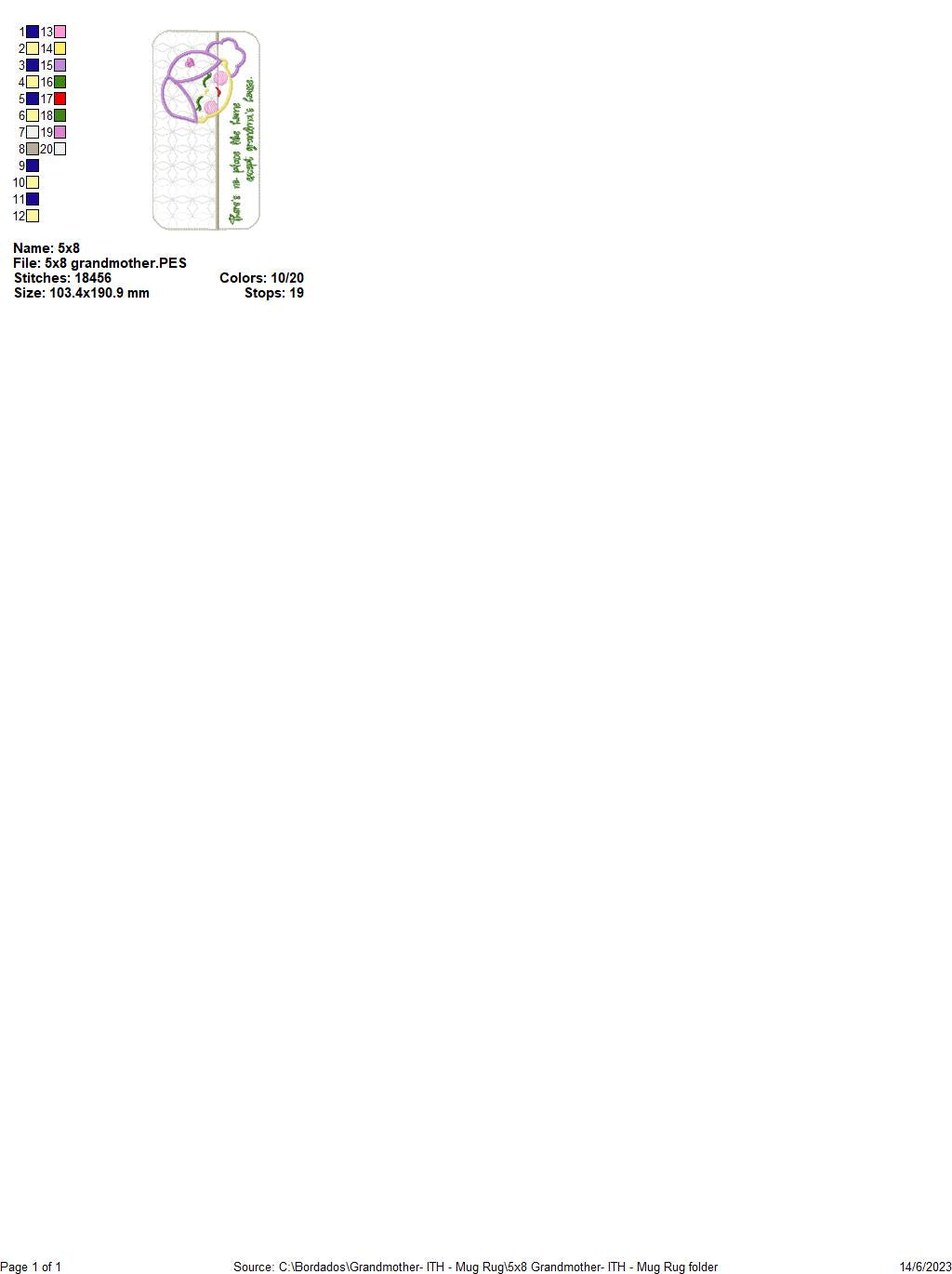 Celebrate Grandparents Day with this exquisite Grandmother- ITH Mug Rug. This delicate piece of embroidery art is designed to bring a touch of elegance and poignancy to any special occasion. Available in sizes 5x7, 5x8, 6x10, 7x12, and 8x14, it is the perfect way to honor the treasured bond between grandparents and grandchildren.
