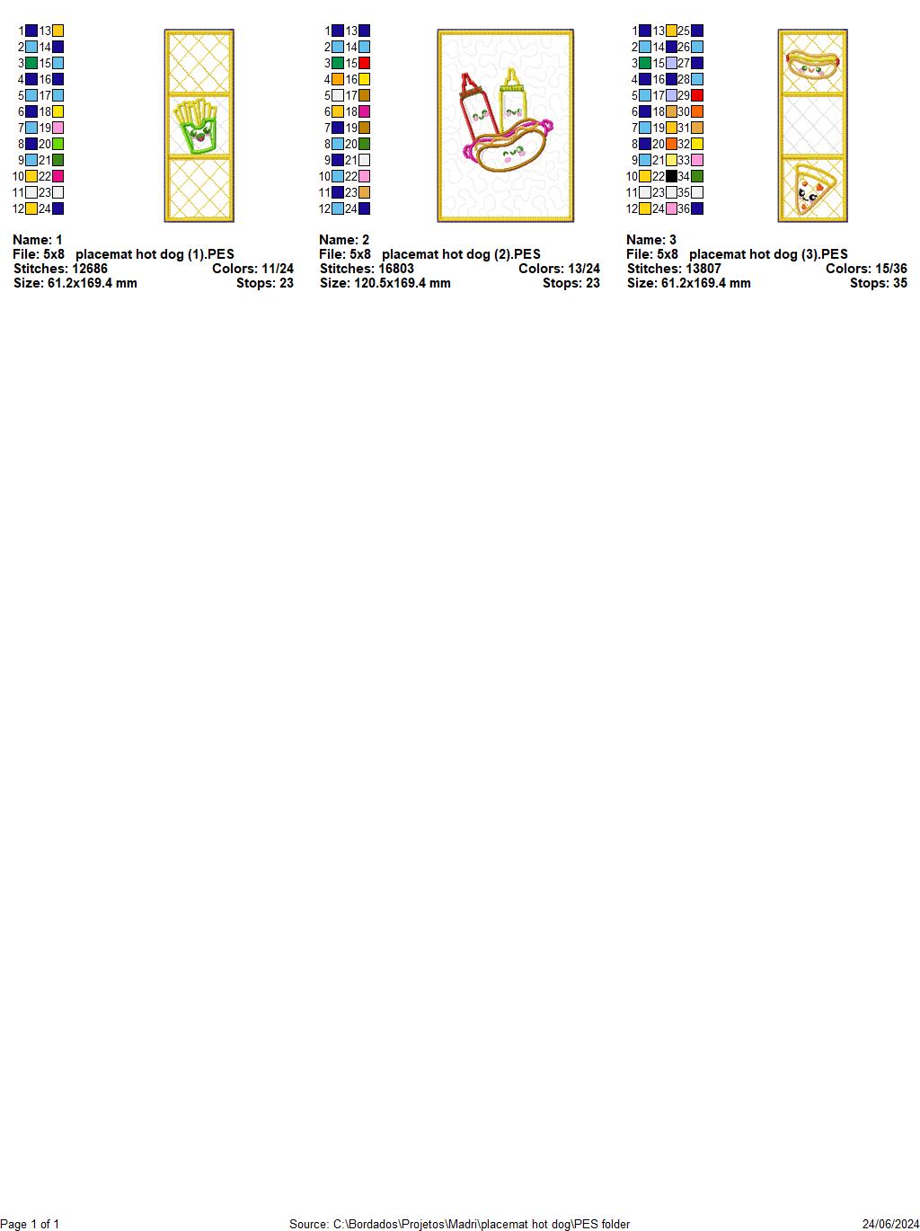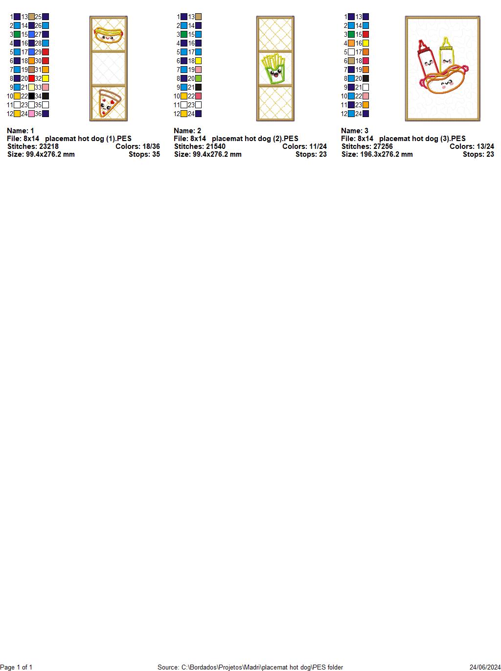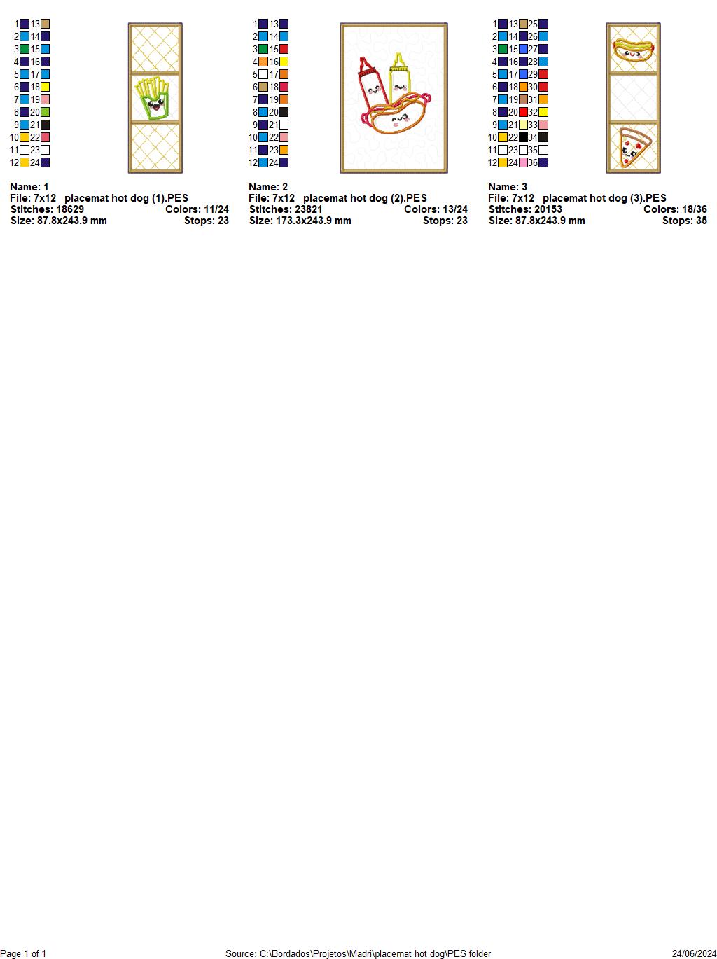 Placemat hot dog - ITH Project - Machine Embroidery Design