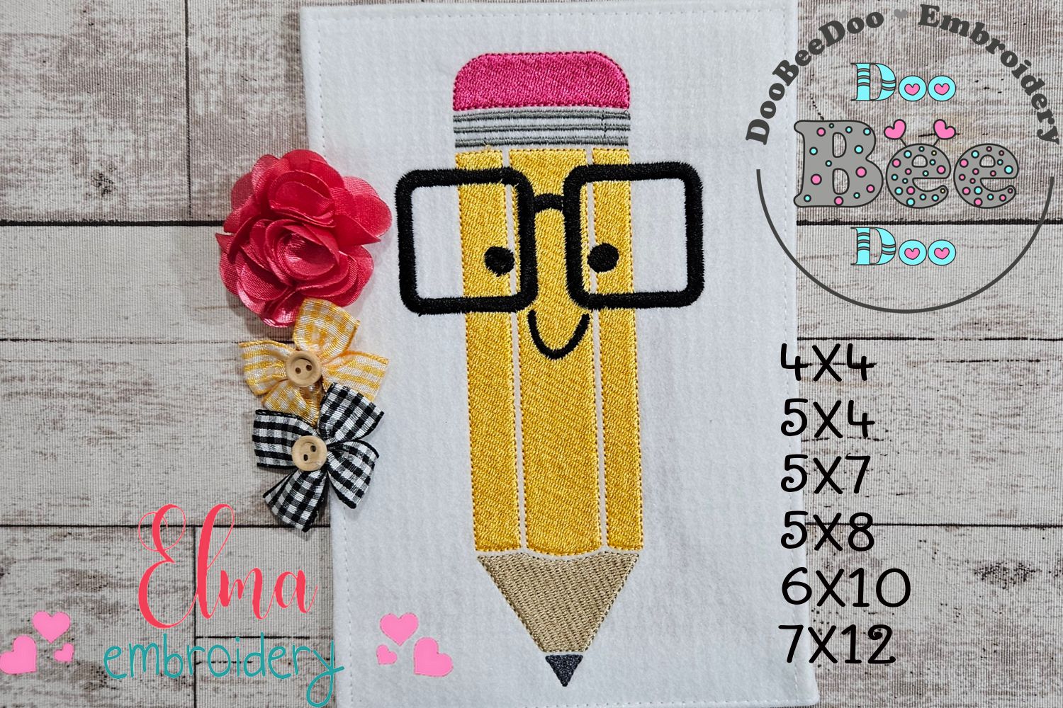 Funny School Pencil with Glasses - Fill Stitch - Machine Embroidery Design