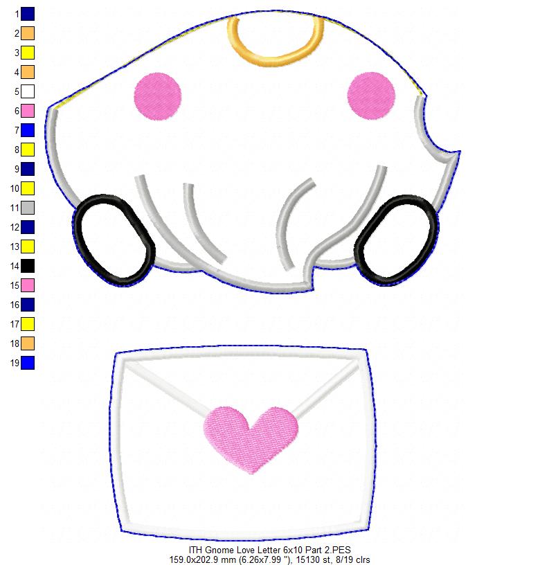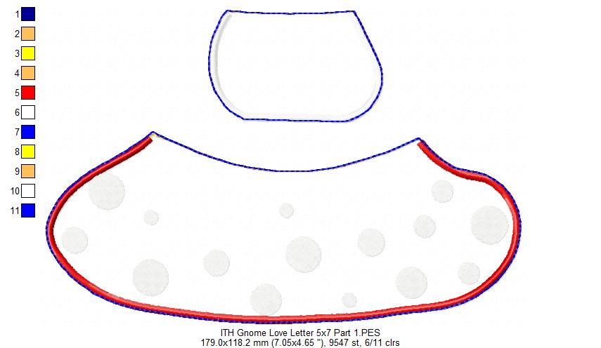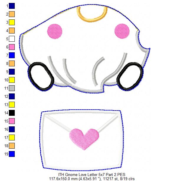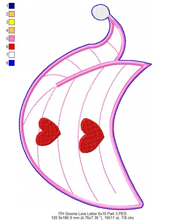 Gnome Love Letter Ornament - ITH Project - Machine Embroidery Design
