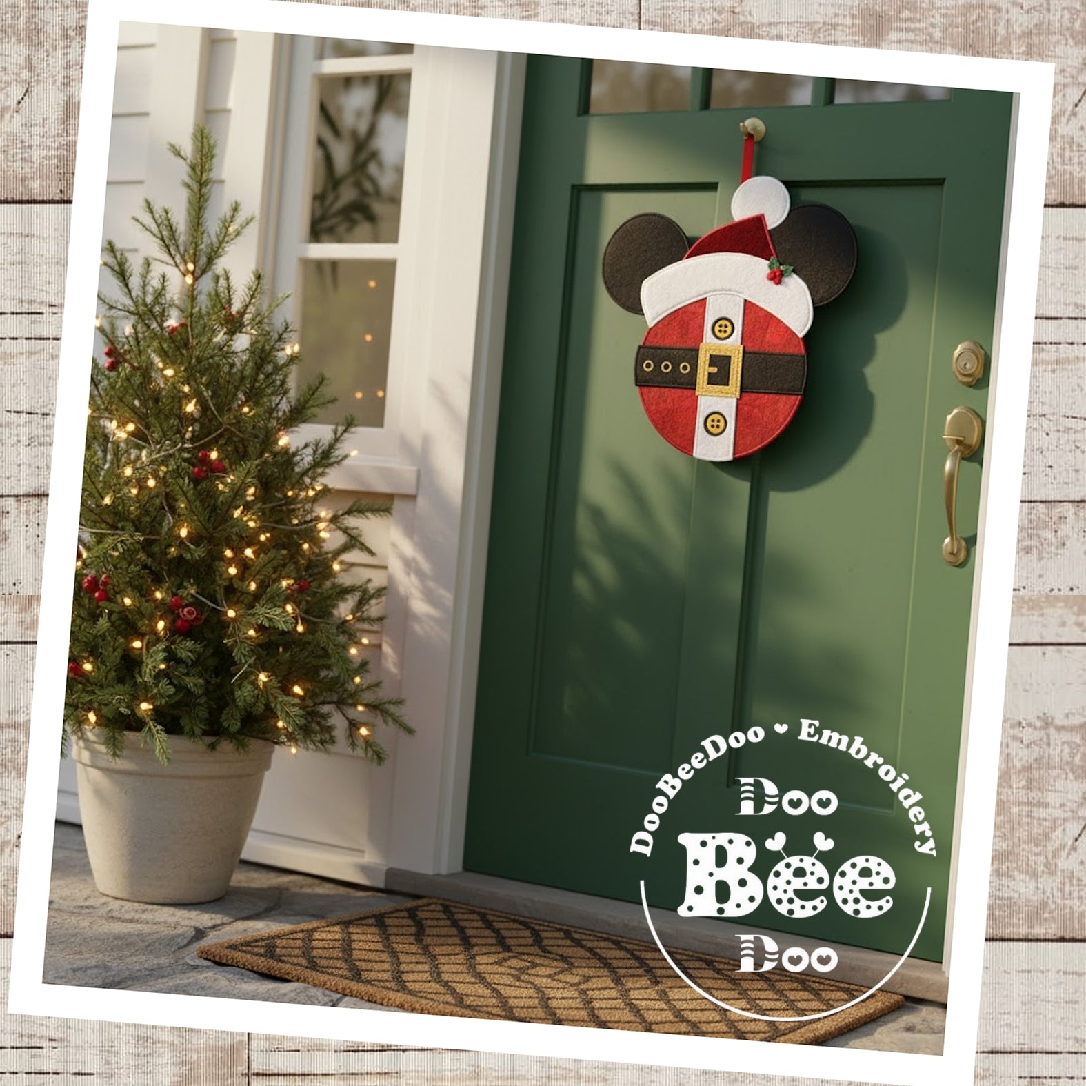 Whether displayed on your wall, door, or tree, this Santa Mickey will make everyone smile!