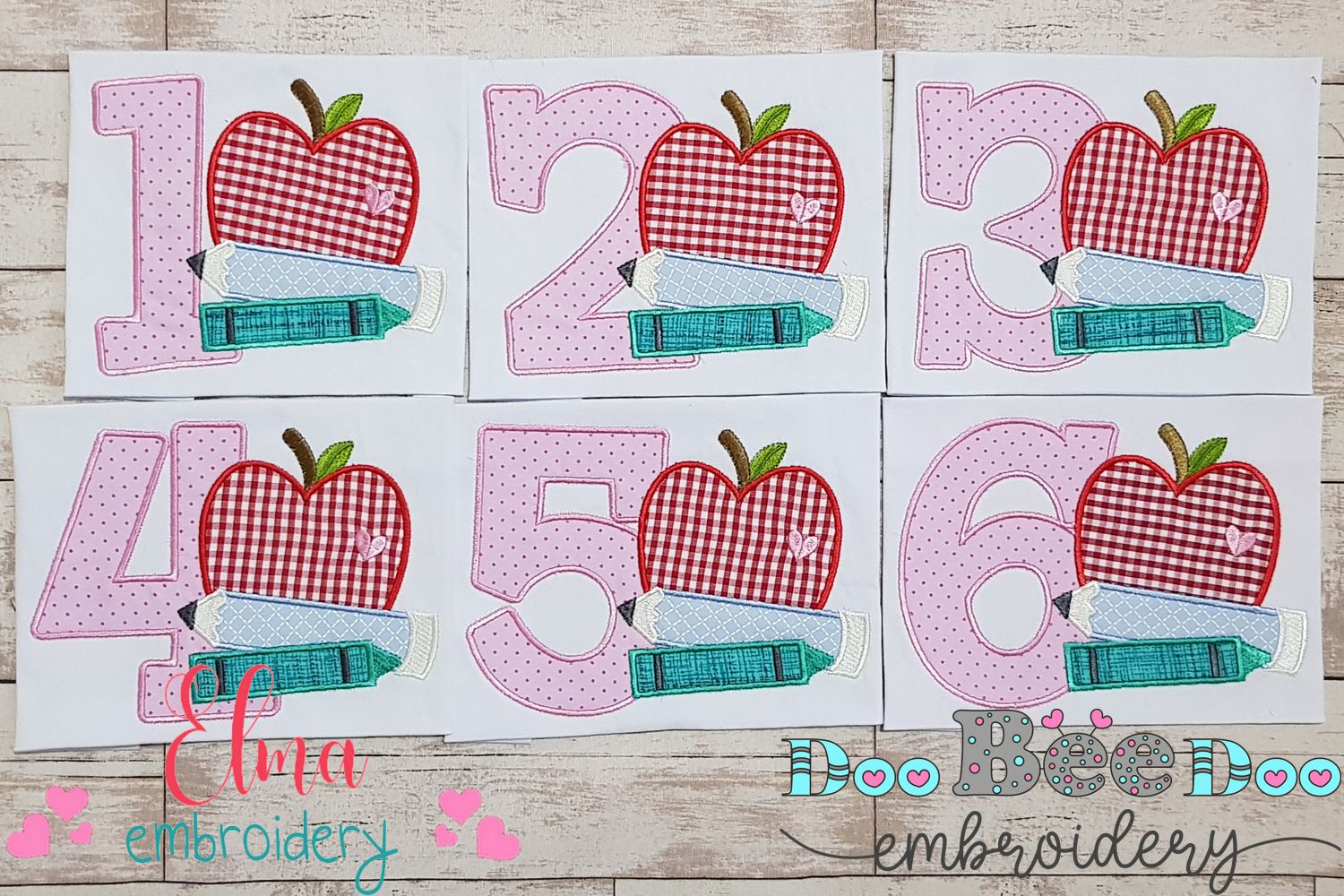 1st to 6th Grade Apple, Pencil and Crayon Back to School - Applique-Machine Embroidery Design
