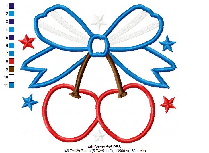 4th of July Coquette Cherry Bow - Applique - Machine Embroidery Design