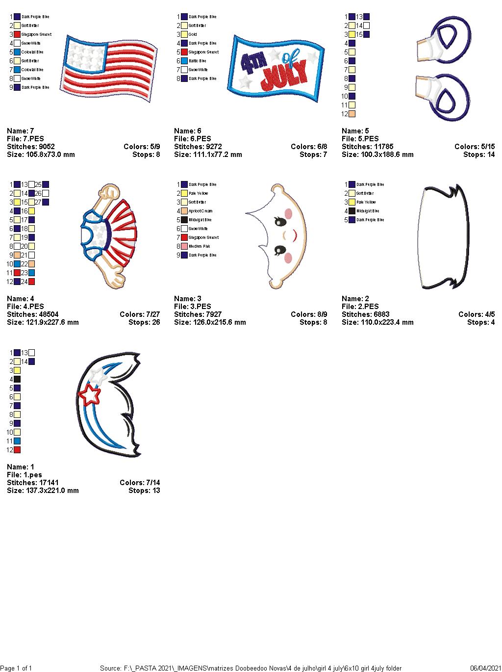 4th of July Girl Ornament - ITH Project - Machine Embroidery Design