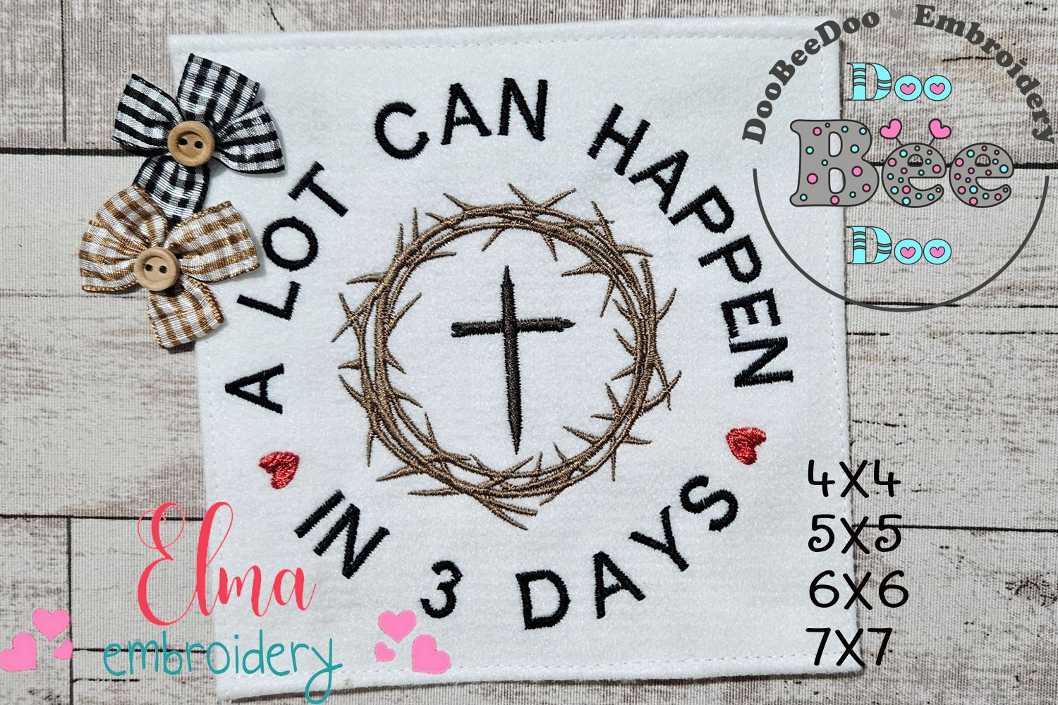 Transform your fabrics with our exquisite "A Lot Can Happen in 3 Days" embroidery design. With 4 sizes available, this machine embroidery design instantly elevates your sewing projects. Download now for a quick and luxurious touch to your creations.