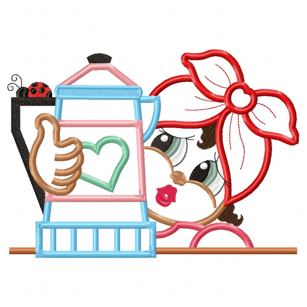 Afro Girl with Teapot - Applique Embroidery
