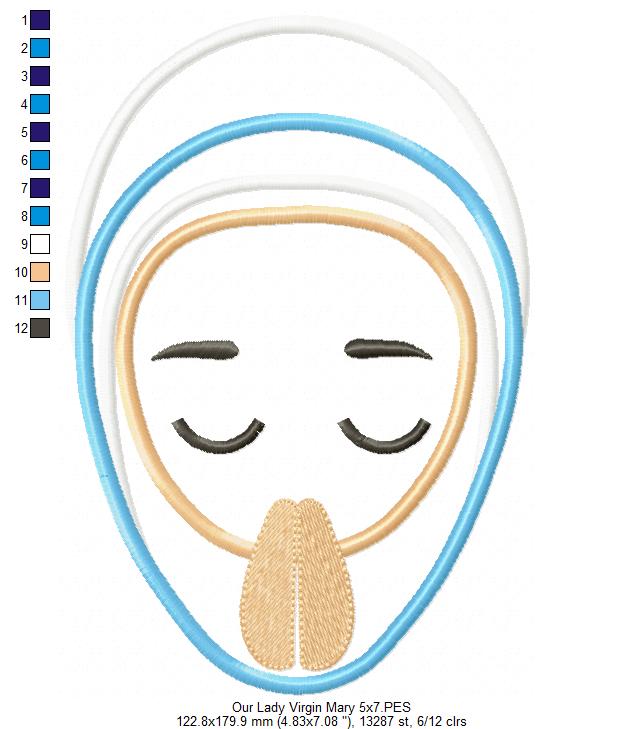 This beautiful Angel Our Lady Virgin Mary Applique is the perfect addition to your next embroidery project. The design features embroidery and machine embroidery for easy downloading and use. Get creative and delight with this wonderful design!