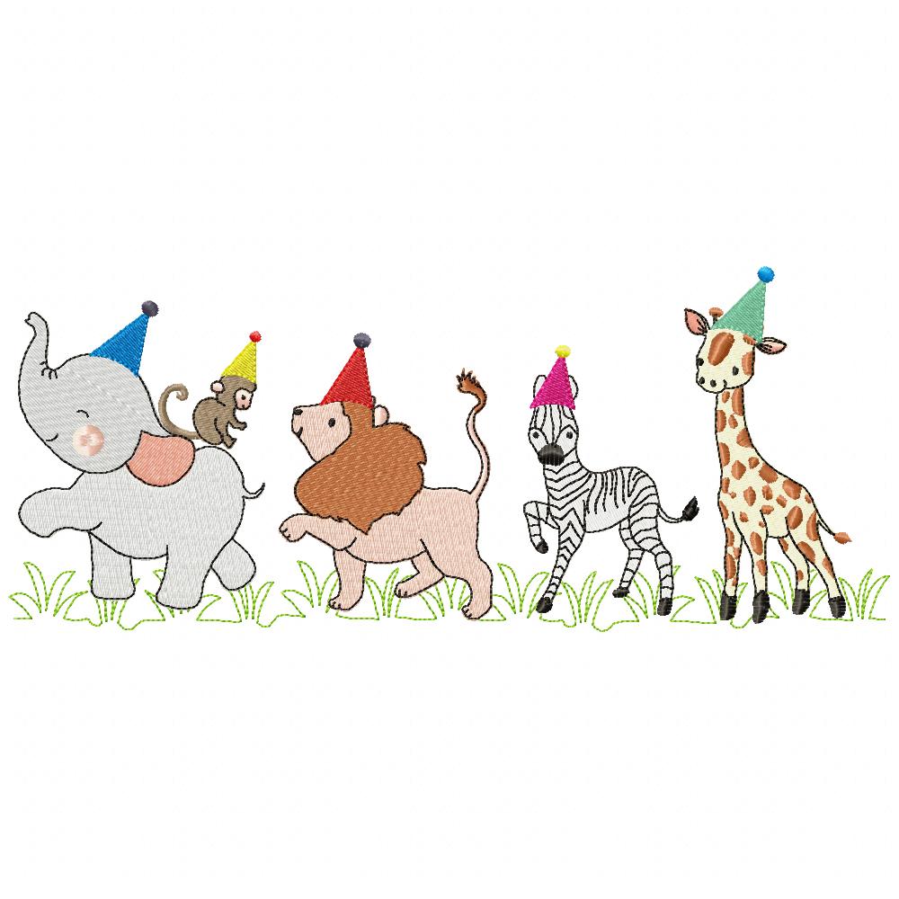 Animals Safari Birthday Parade - Fill Stitch - Machine Embroidery Design