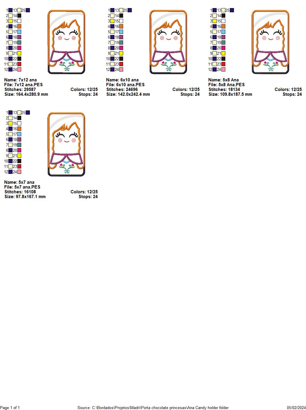 Anna Princess Frozen Candy Holder - ITH Project - Machine Embroidery Design