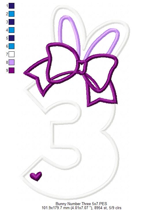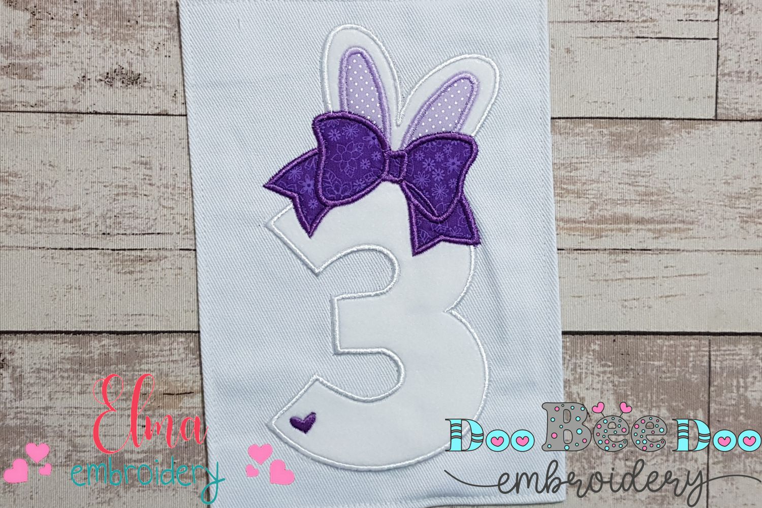 Easter Bunny Ears and Bow Number 3 Three 3rd Third Birthday - Applique