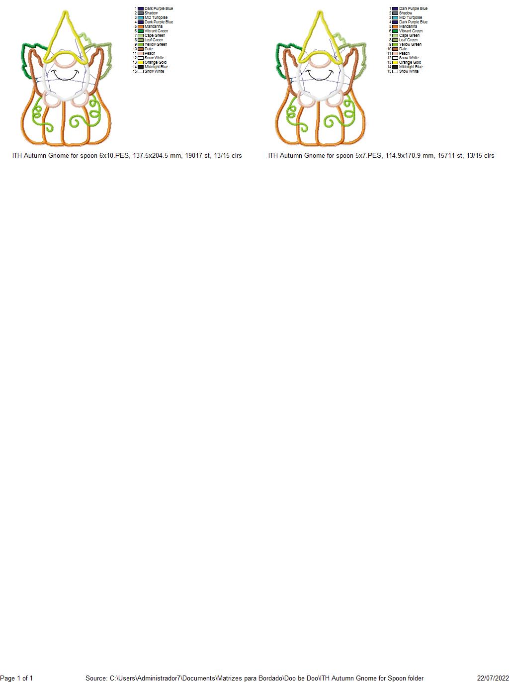 Autumn Gnome Spoon Ornament - ITH Project - Machine Embroidery Design