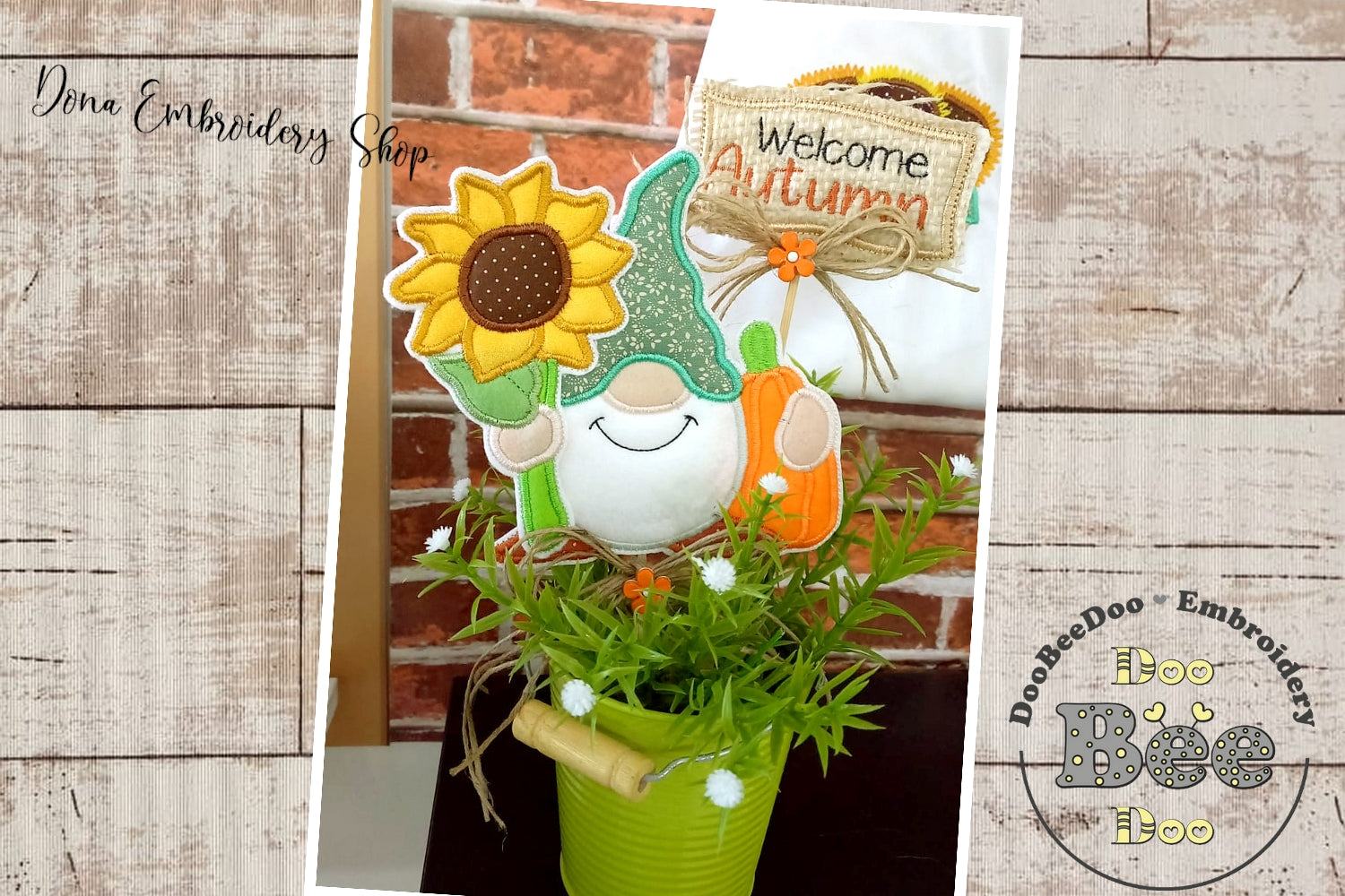 Autumn Gnome Vase Ornament - ITH Project - Machine Embroidery Design