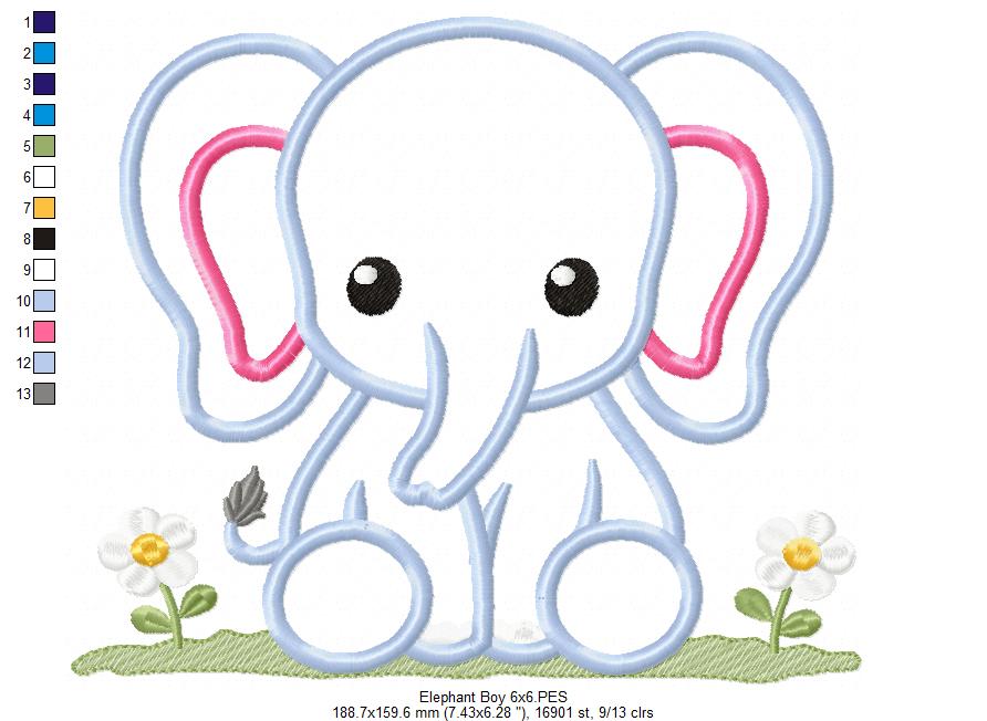 Baby Elephant Boy - Applique - Machine Embroidery Design