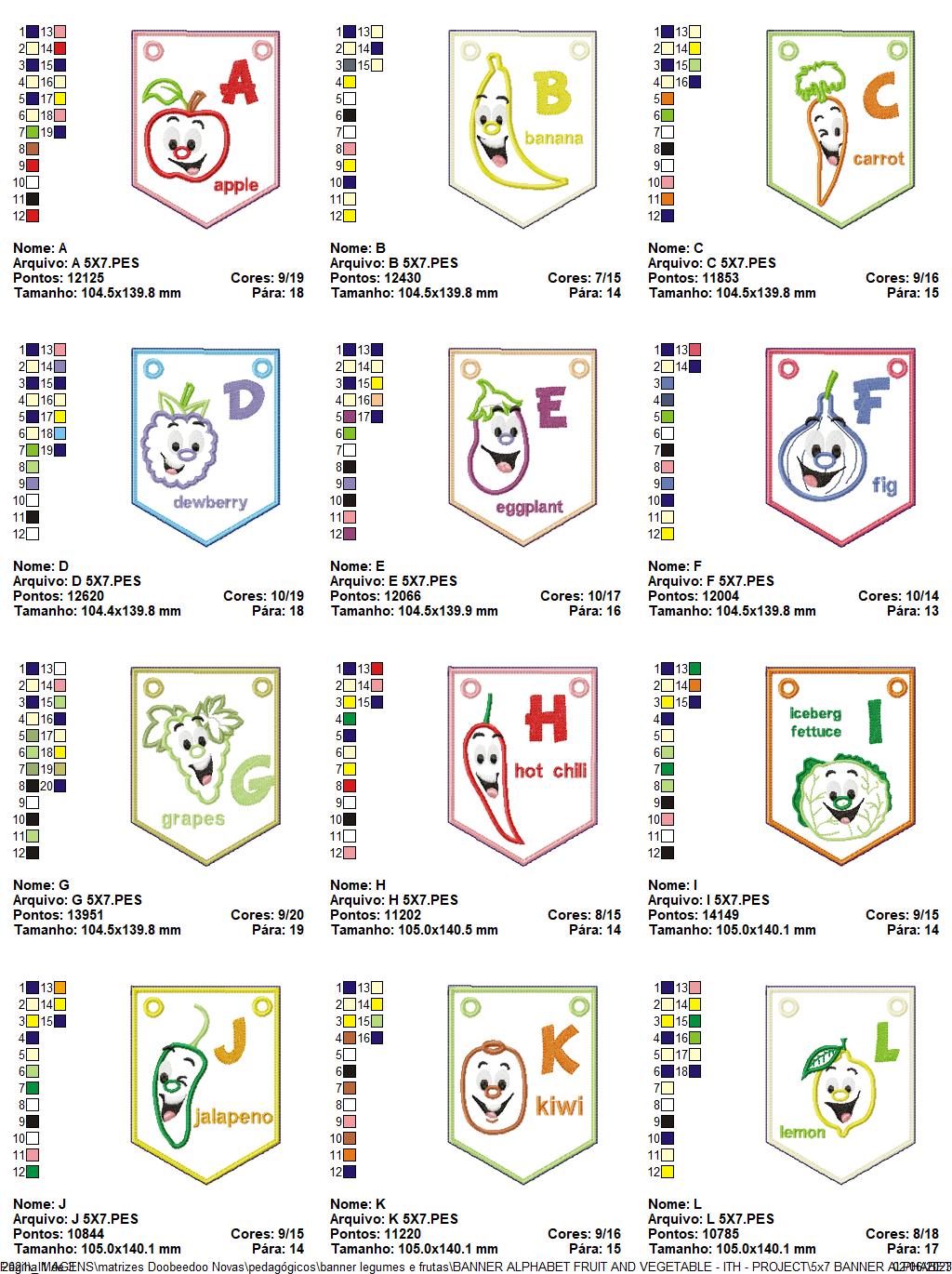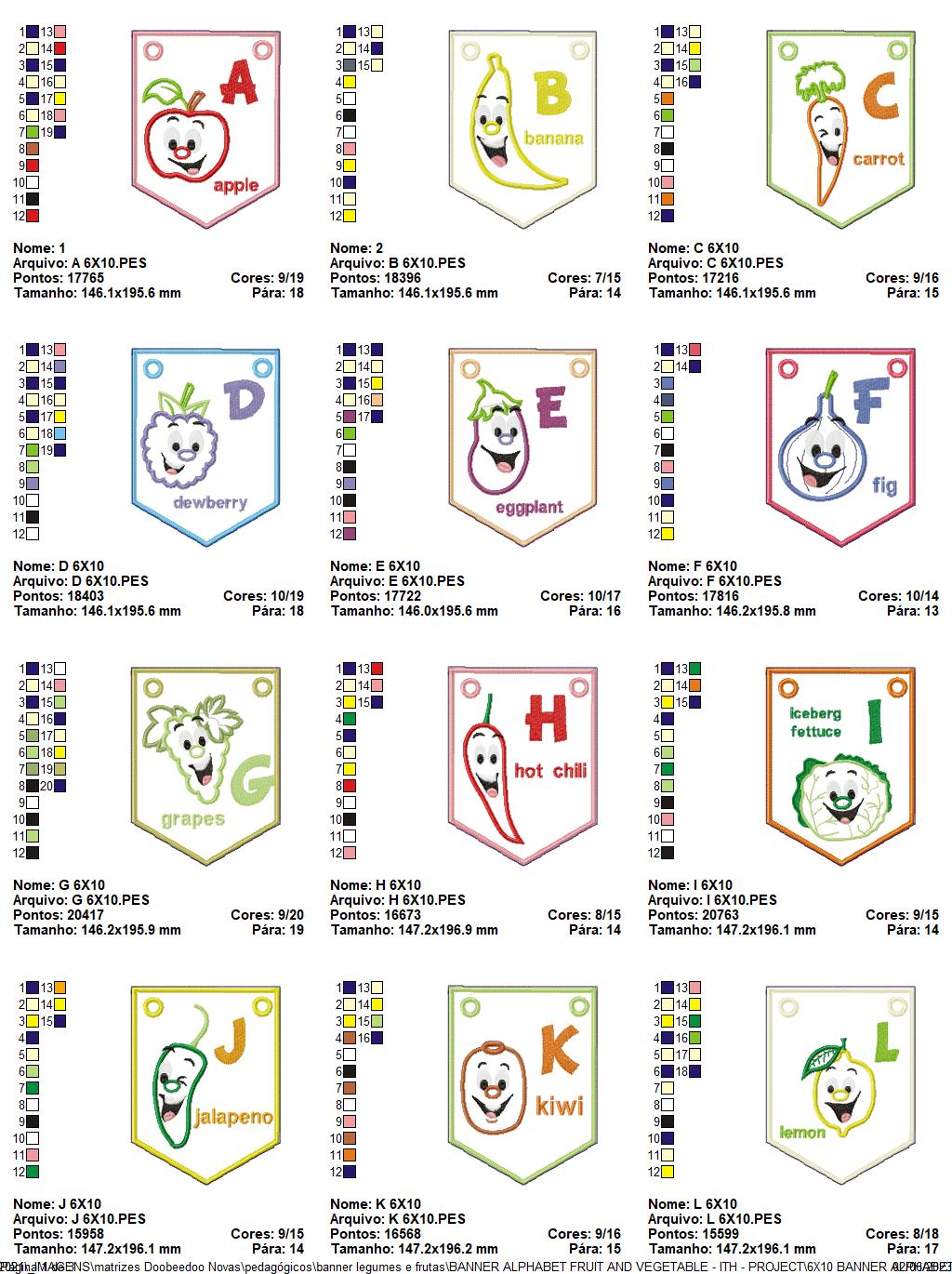 Alphabet Banner Fruits and Vegetables - ITH Project - Machine Embroidery Design