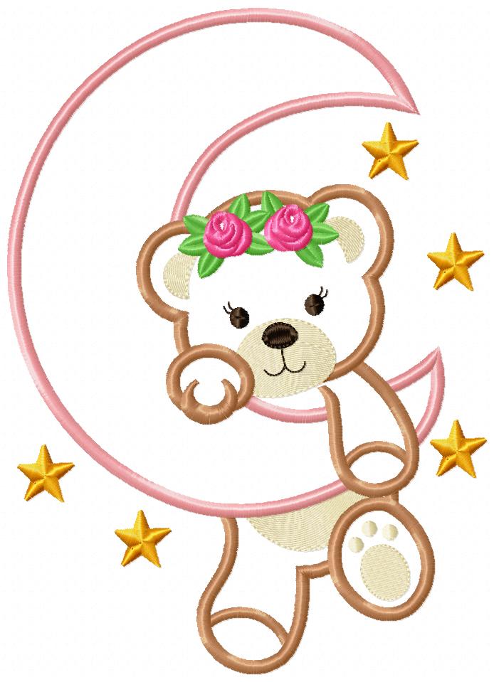 Bear Girl on the Moon - Aplique - Machine Embroidery Design