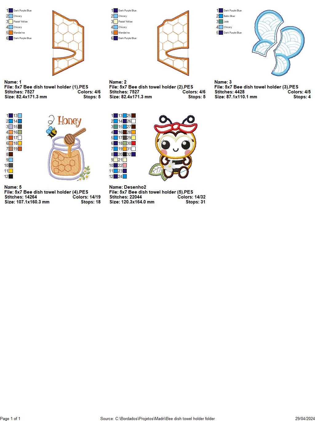 Bee dish towel holder - ITH Project - Machine Embroidery Design