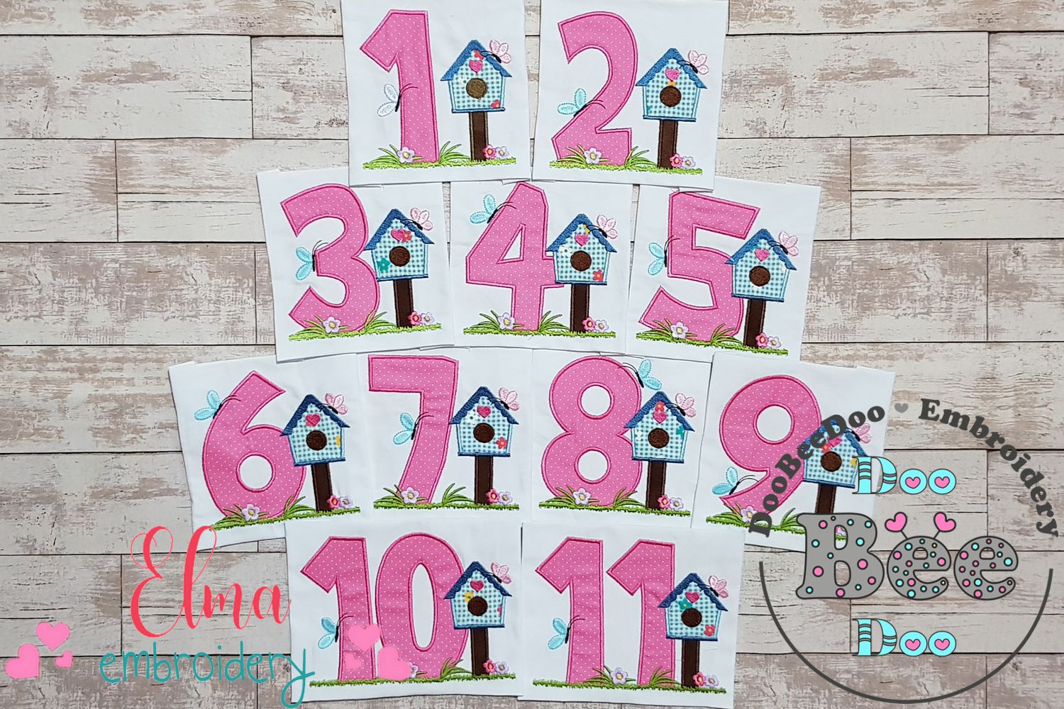 Celebrate birthdays in style with this fun, embroidery design bird house birthday set! Count your way through the years from 1-11 with this instant download, machine embroidery design. Make birthdays special and unique with appliqued birds perched upon a colorful bird house! (It's chirpy, it's cheery - and it's the perfect birthday gift!)