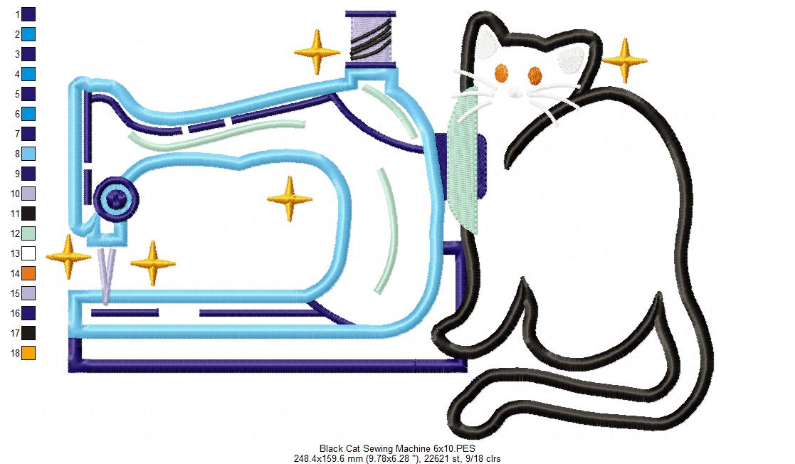 Black Cat and a Vintage Sewing Machine - Applique