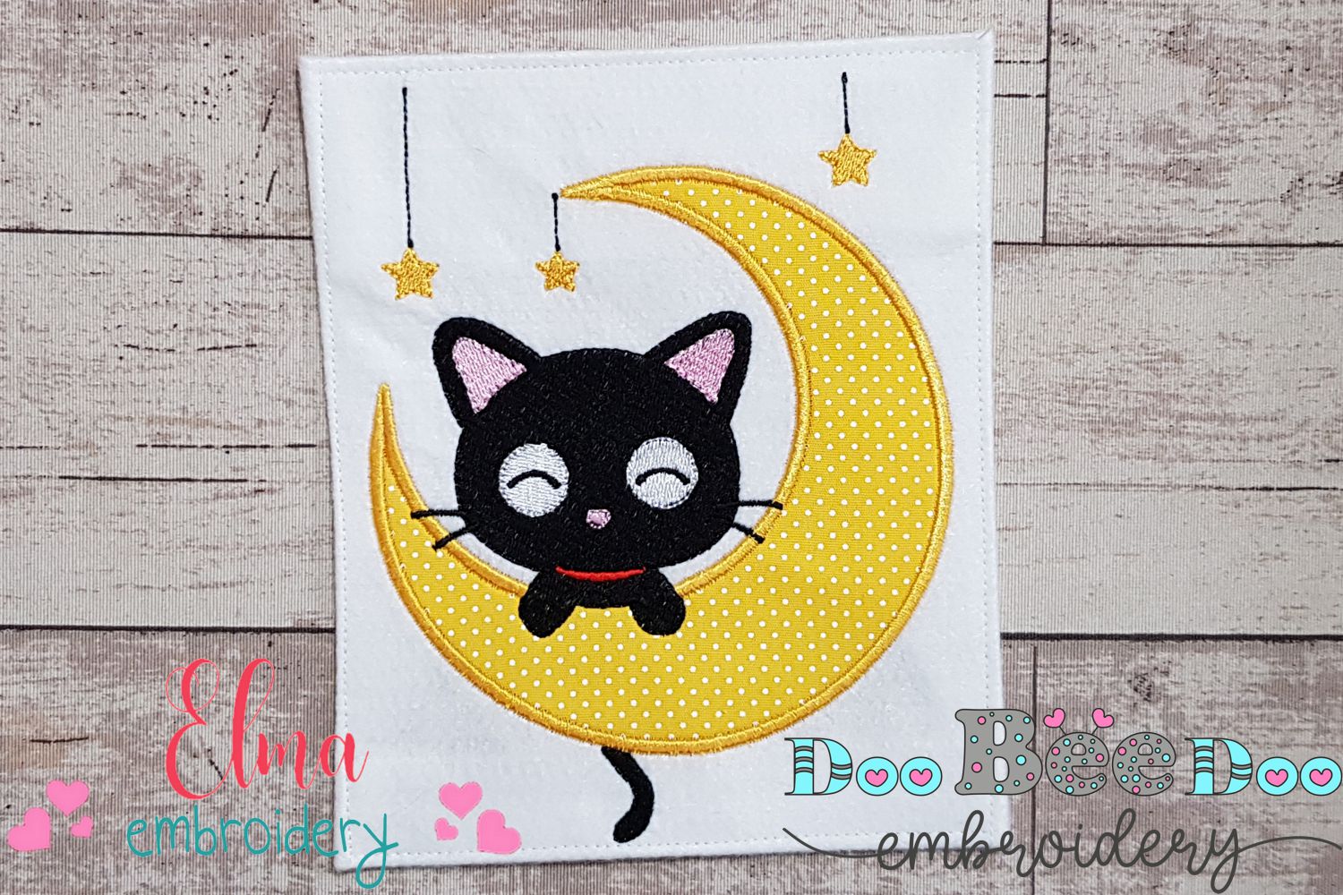 Black Cat on the Moon - Applique - Machine Embroidery Design