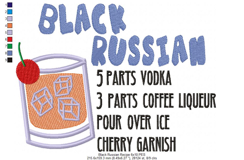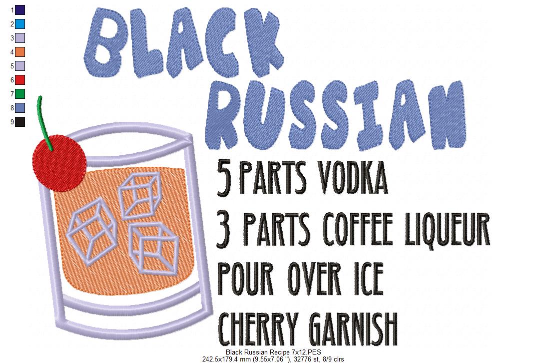 Black Russian Recipe - Applique - Machine Embroidery Design