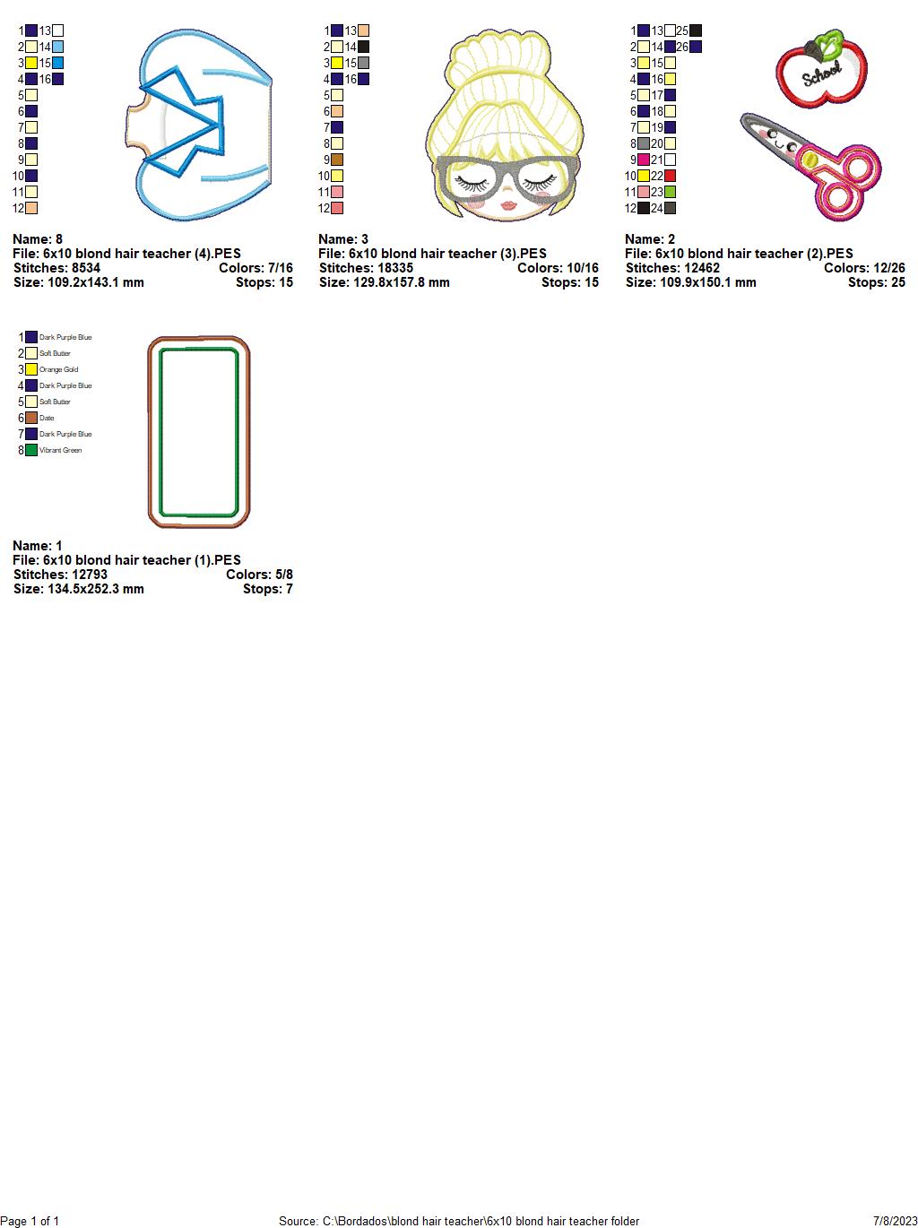 Blond Teacher - ITH Project - Machine Embroidery Design