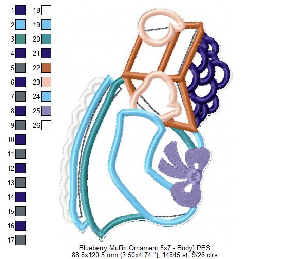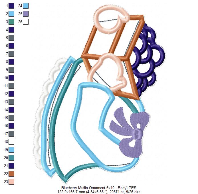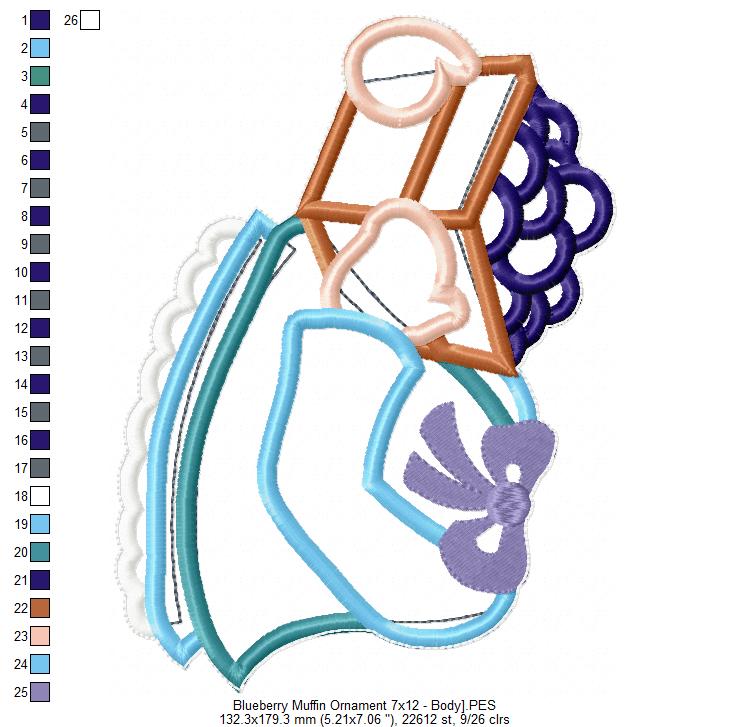 Blueberry Muffin Ornament - ITH Project - Machine Embroidery Design