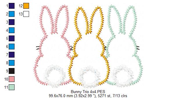 Bunnies Back Trio - Zig Zag Applique - Machine Embroidery Design