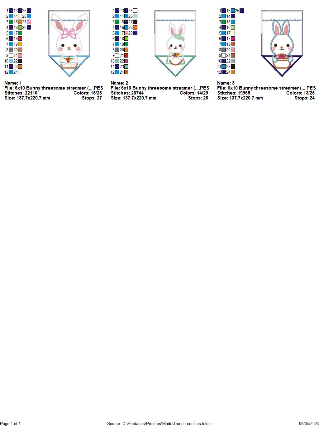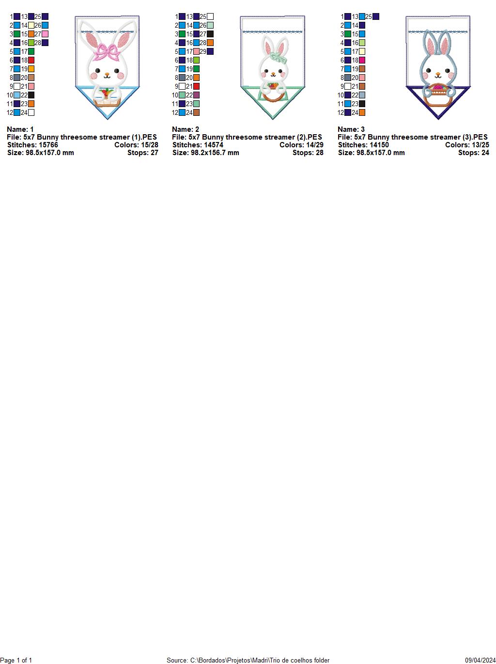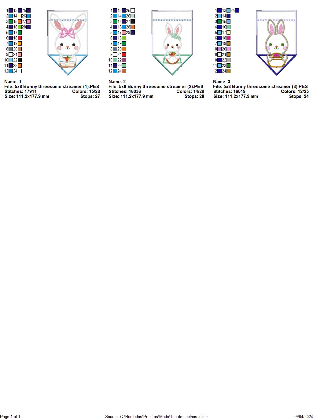 Bunny threesome streamer - ITH Project - Machine Embroidery Design
