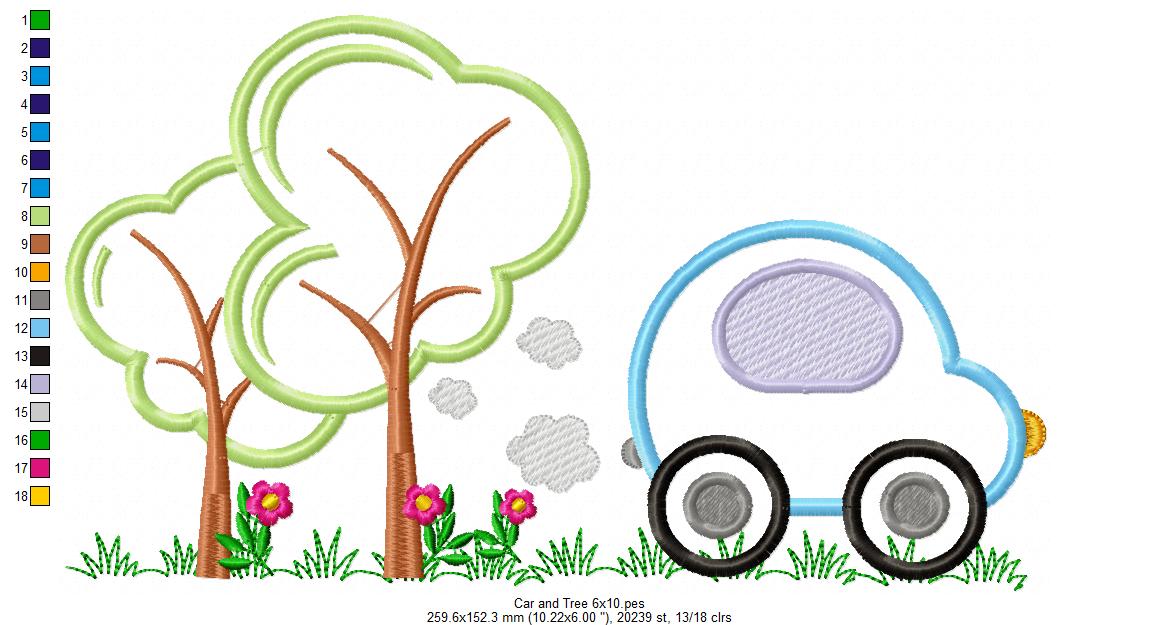 Don't let this "Car and Tree" design drive you up a tree! Append some awesome color to your life with this fun and vibrant embroidery design. Perfect for jazzing up T-shirts, blankets, hats, and more - it's an instant-download that's cool and convenient. Get crafty and vroom around the town with this machine-embroidery masterpiece!