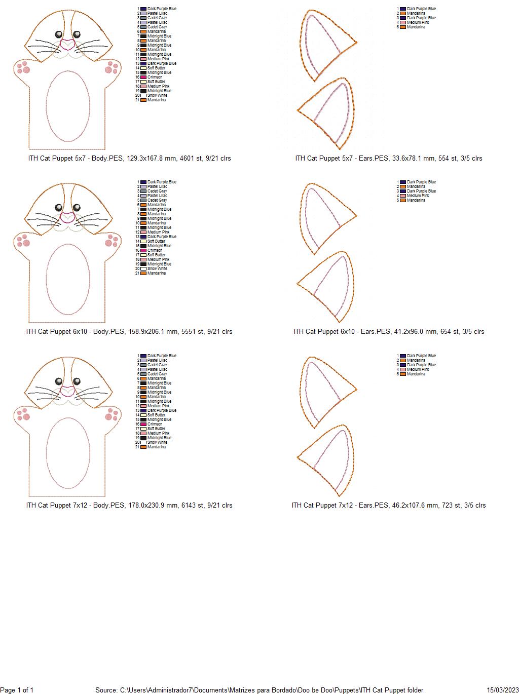Cat Puppet - ITH Project - Machine Embroidery Design