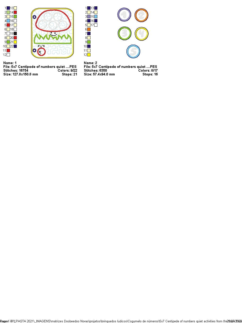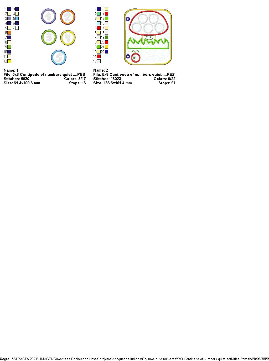 Centipede of Numbers Sensory Book - ITH Project - Machine Embroidery Design