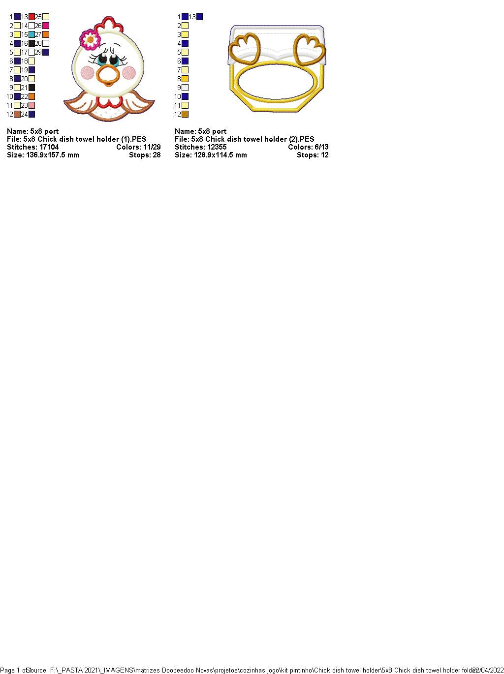 Chick dish towel holder - ITH Project - Machine Embroidery Design