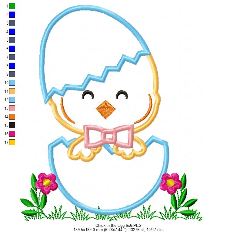 Chick Smiling in an Egg - Applique - Machine Embroidery Design