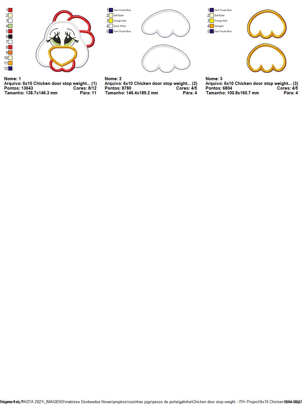 Chicken Door Stop Weight - ITH Project - Machine Embroidery Design