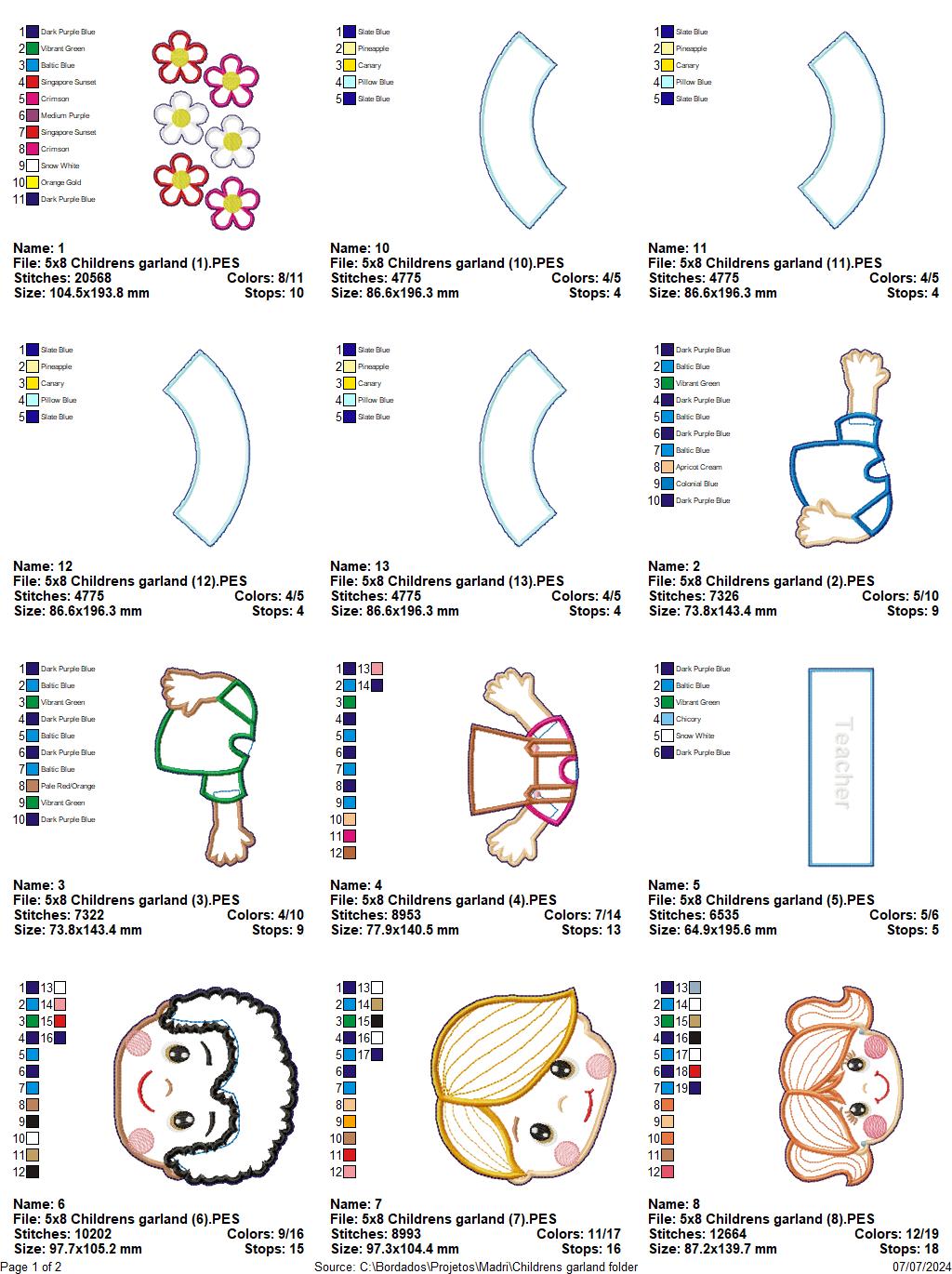 Back to School Children's Garland - ITH Project - Machine Embroidery Design