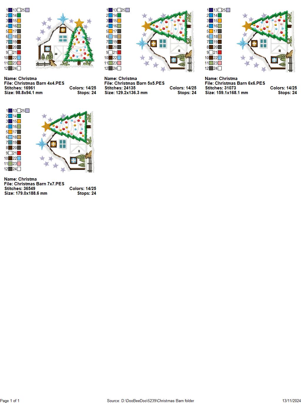 Christmas Barn and Tree - Applique - Machine Embroidery Design