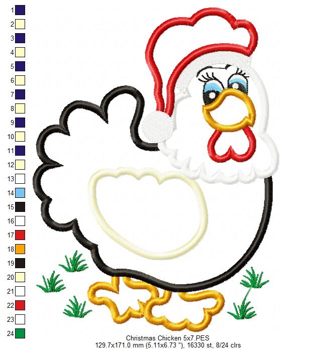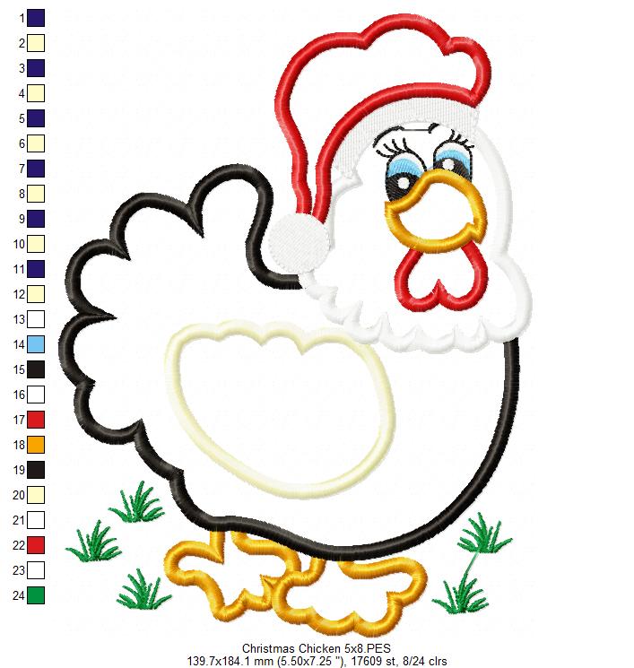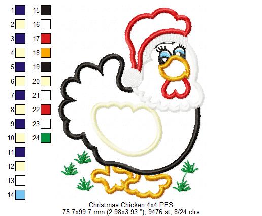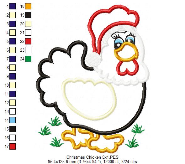 Christmas Chicken - Applique - Machine Embroidery Design