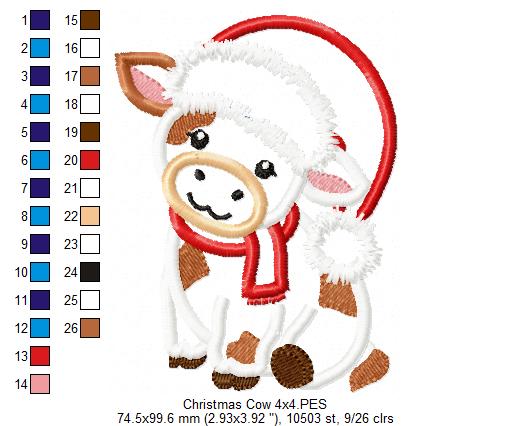 Christmas Cow - Applique - Machine Embroidery Design