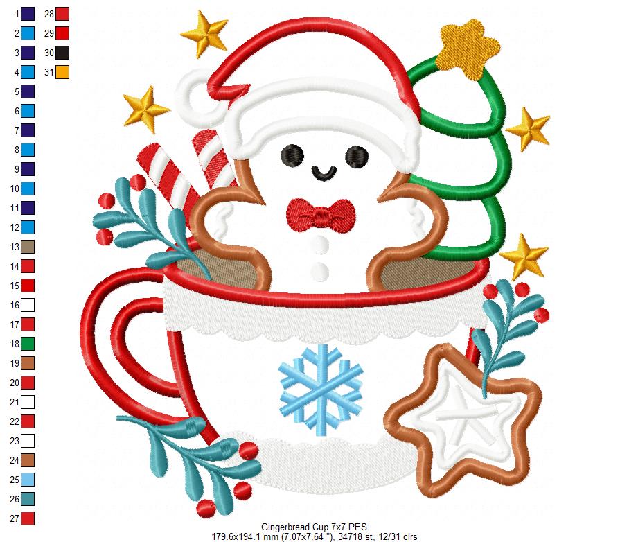 Christmas Gingerbread in a Cup - Applique - Machine Embroidery Design