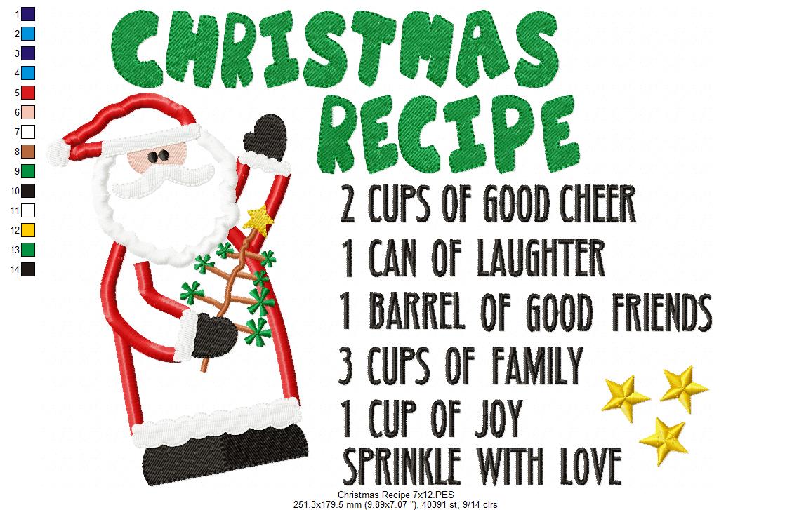 Add a festive touch to any holiday project with this charming Christmas Recipe machine embroidery design! Featuring 4 sizes, it'll fit almost any project, and with the simple instant download, you can get to stitching right away. Let the holiday cheer spread with this adorable design!