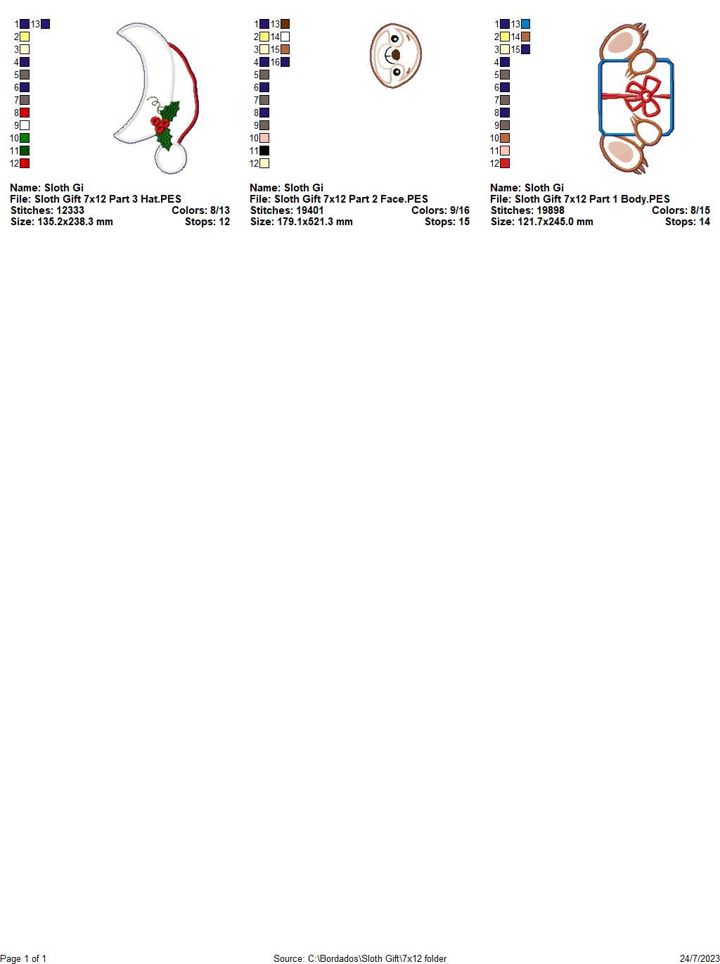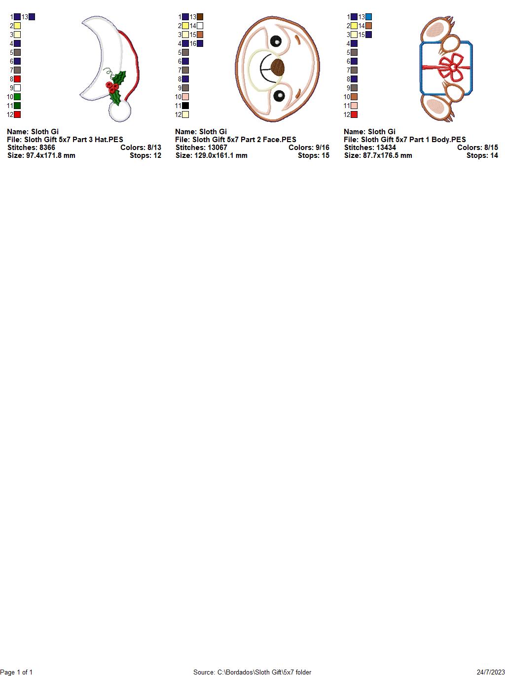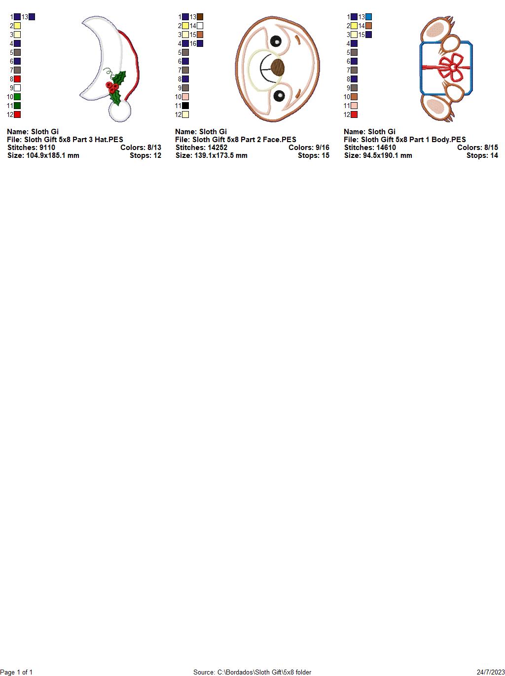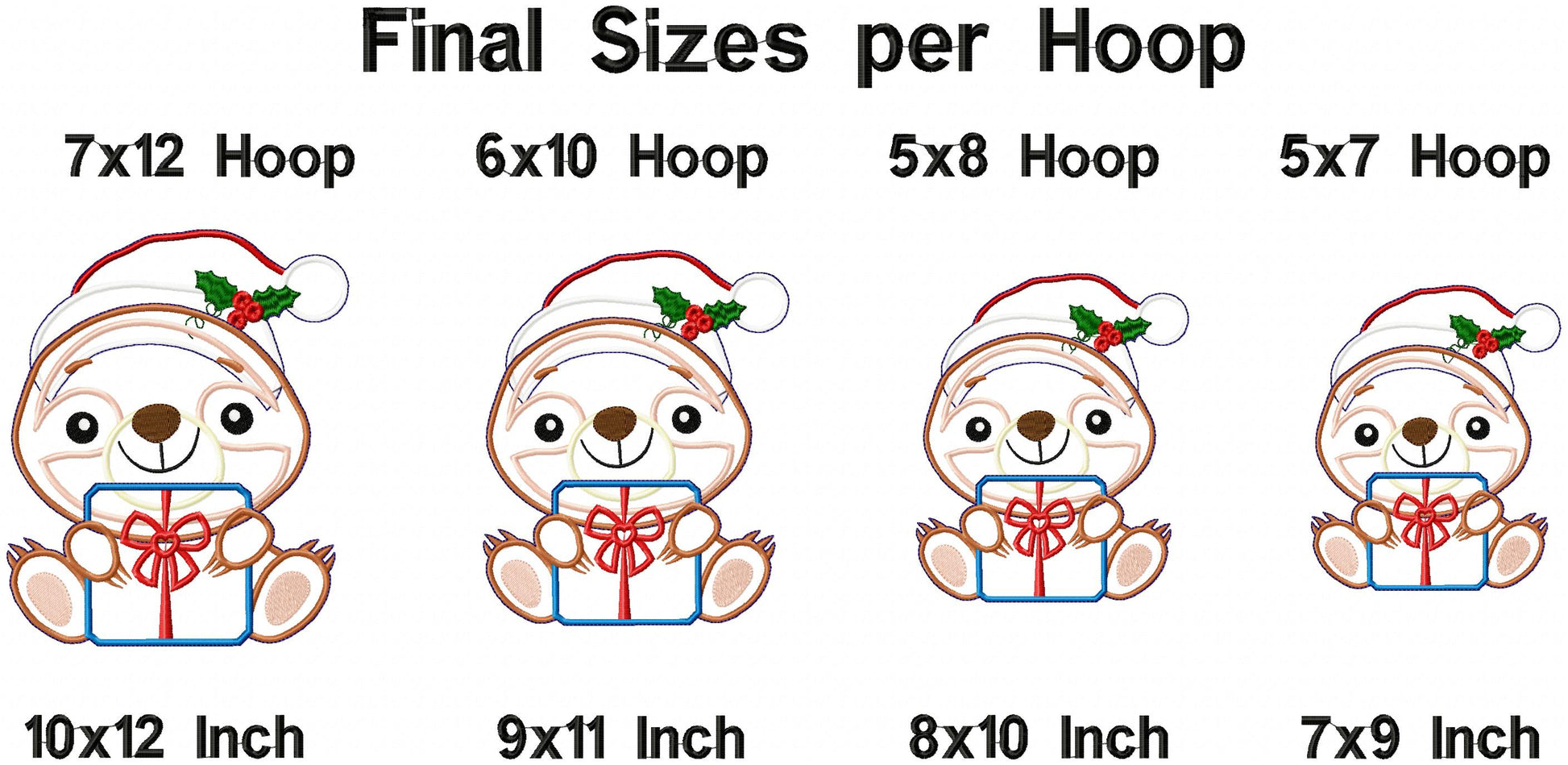 Christmas Sloth Holding a Gift - ITH Project - Machine Embroidery Design